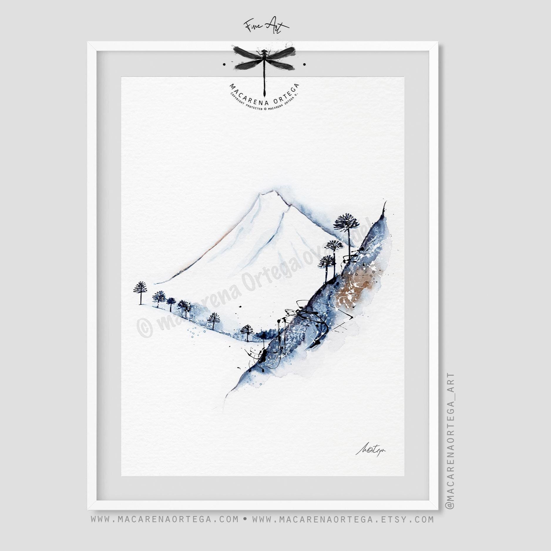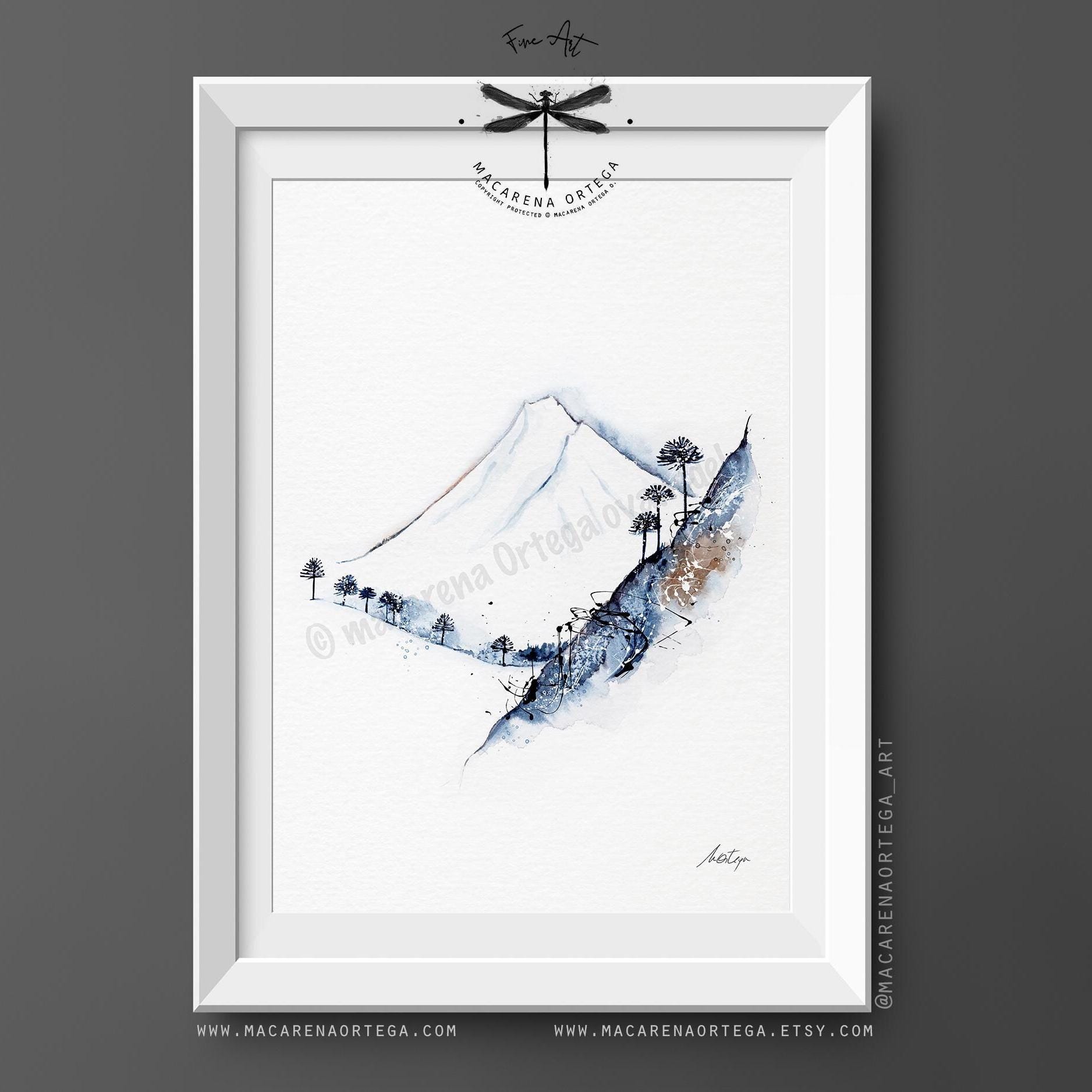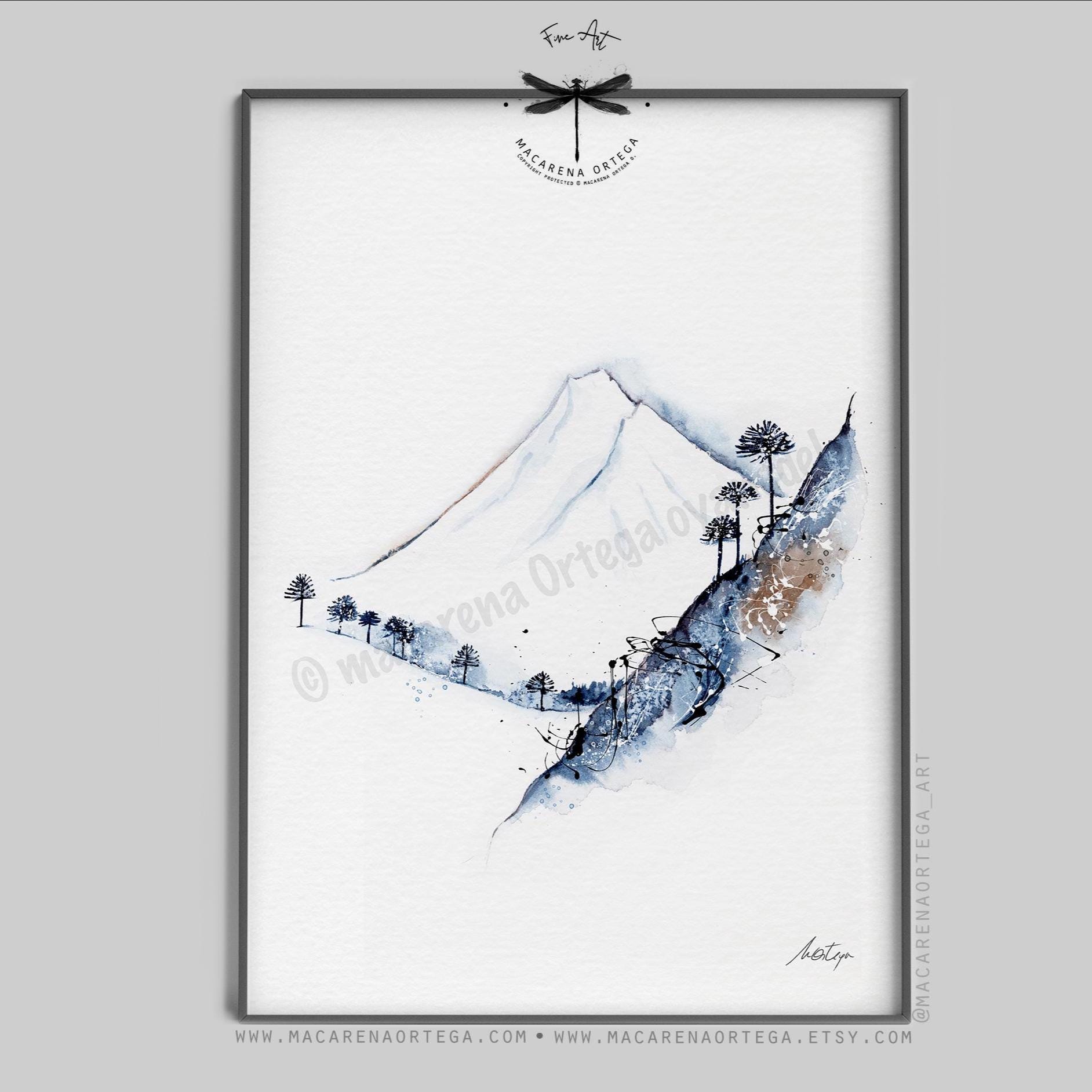 la pintura esta bellisima, nos han encantado los colores y la tecnica también !! hermoso el volcan y sus araucarias