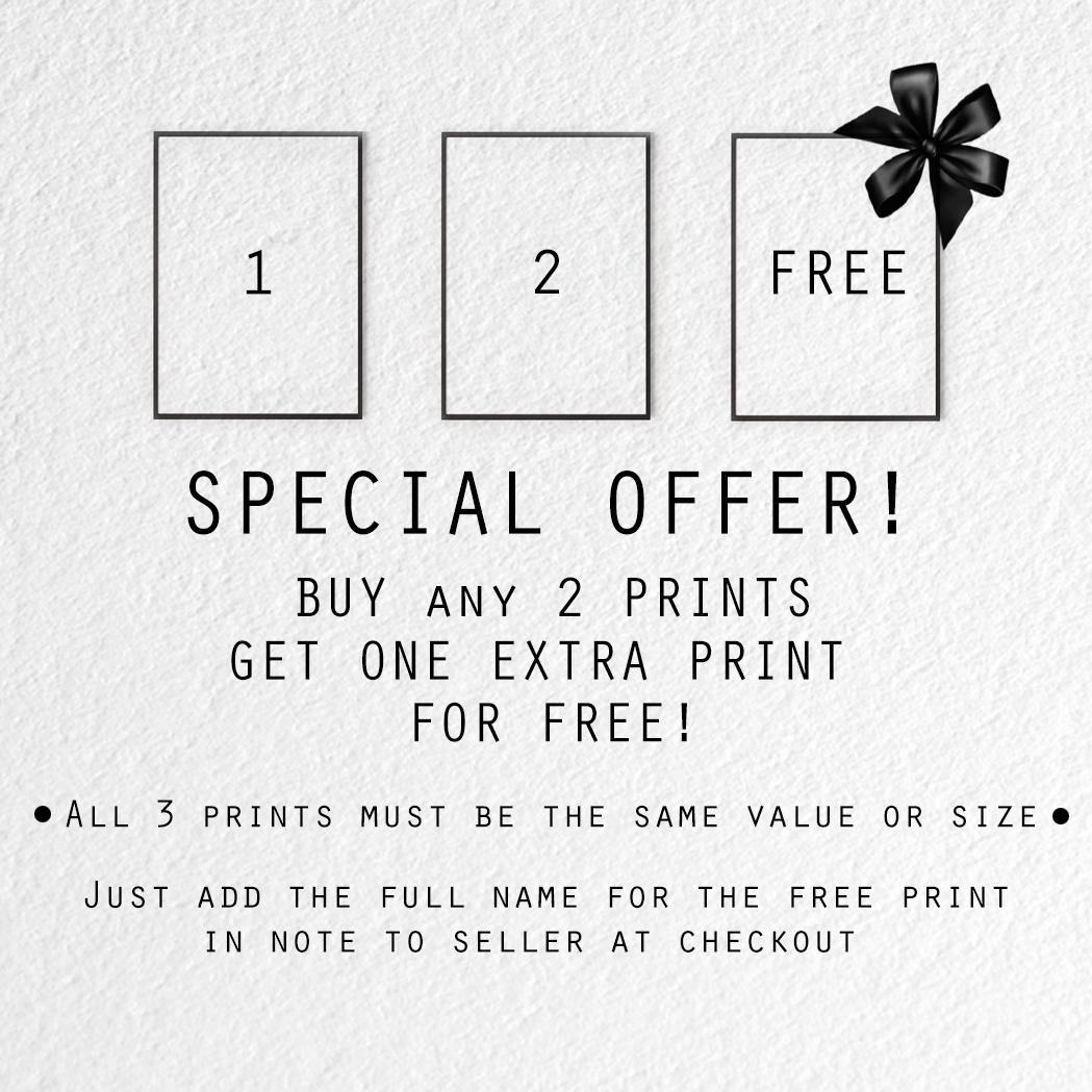 → Buy 2 prints of the same size or value and get a 3rd print FREE! (you’ll receive 3 prints total)