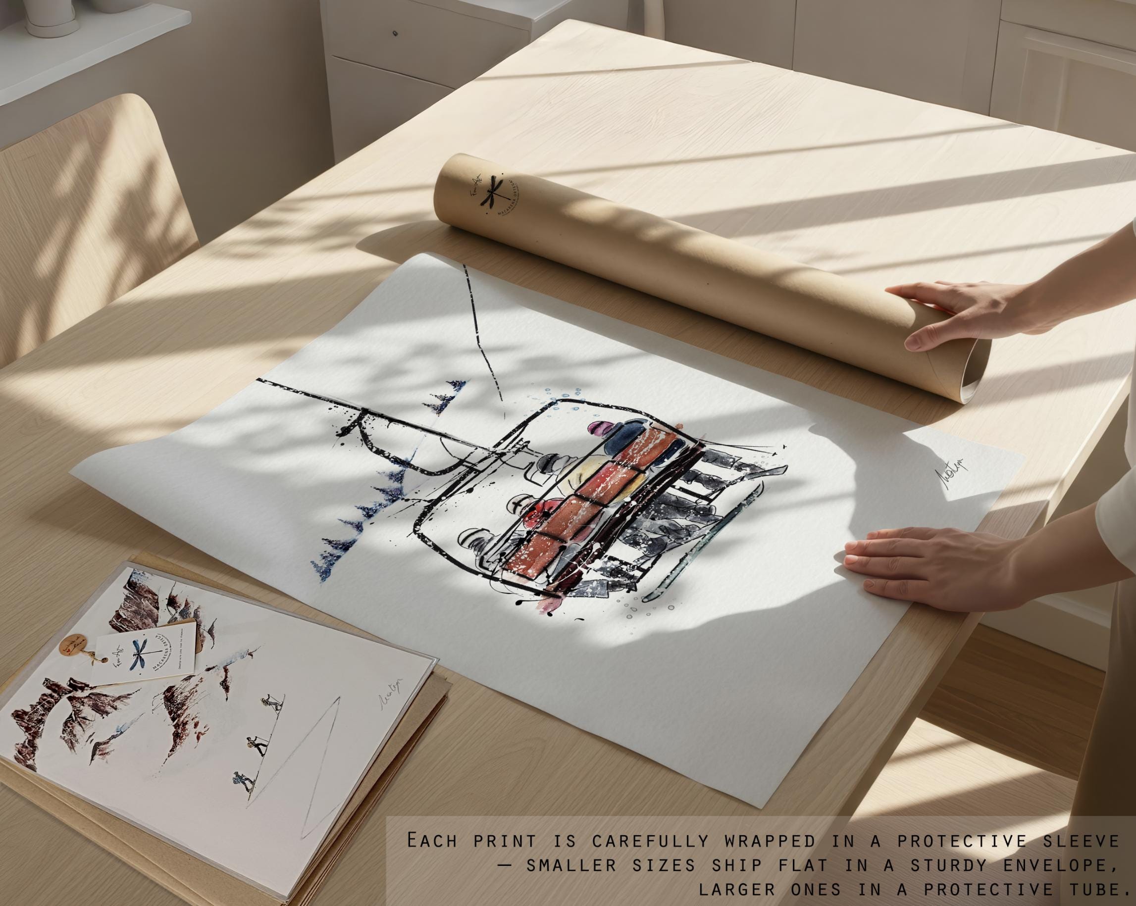 Every chairlift tells a story… pick your team and bring it to life in watercolor.