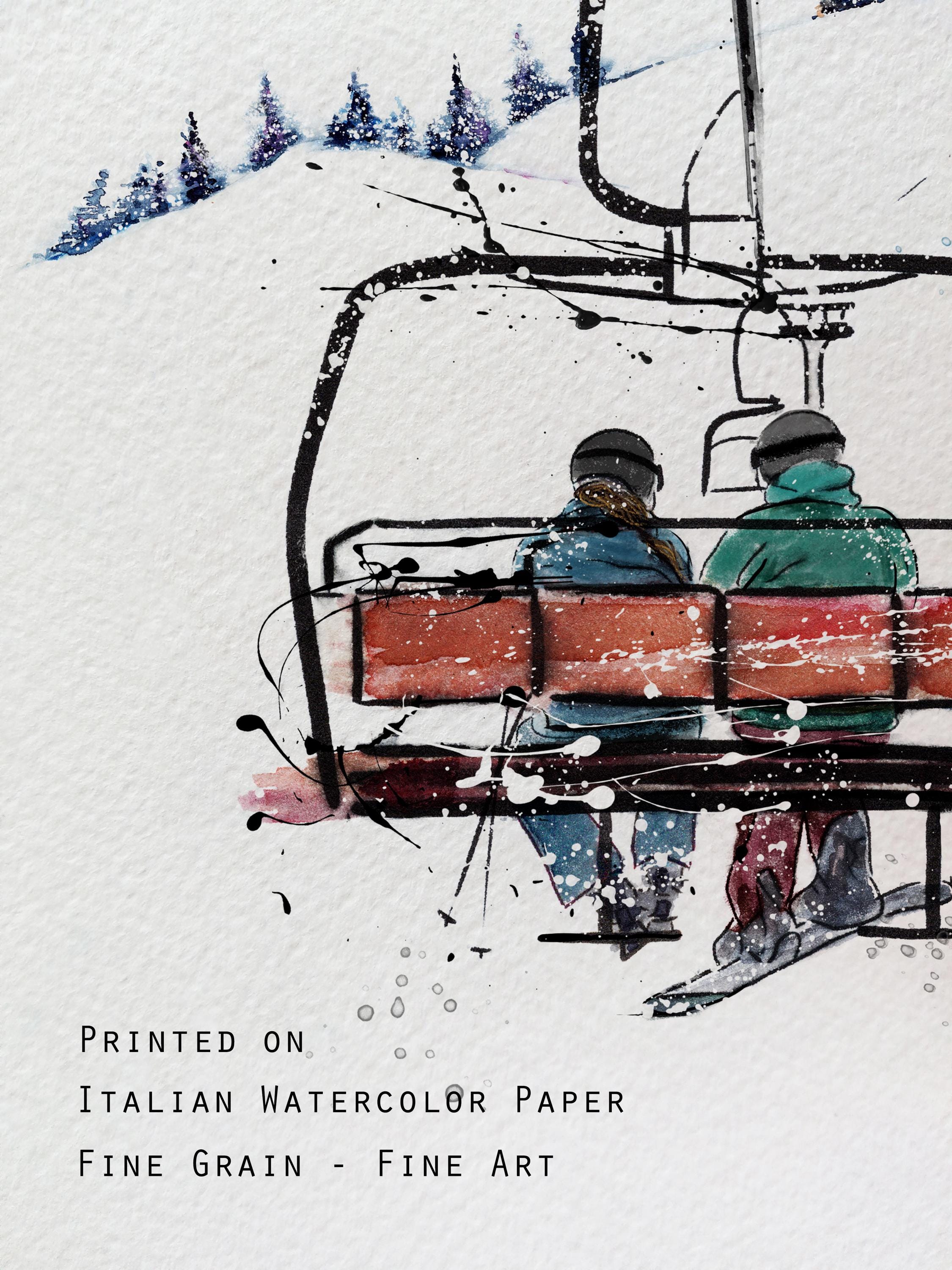 Every chairlift tells a story… pick your team and bring it to life in watercolor.