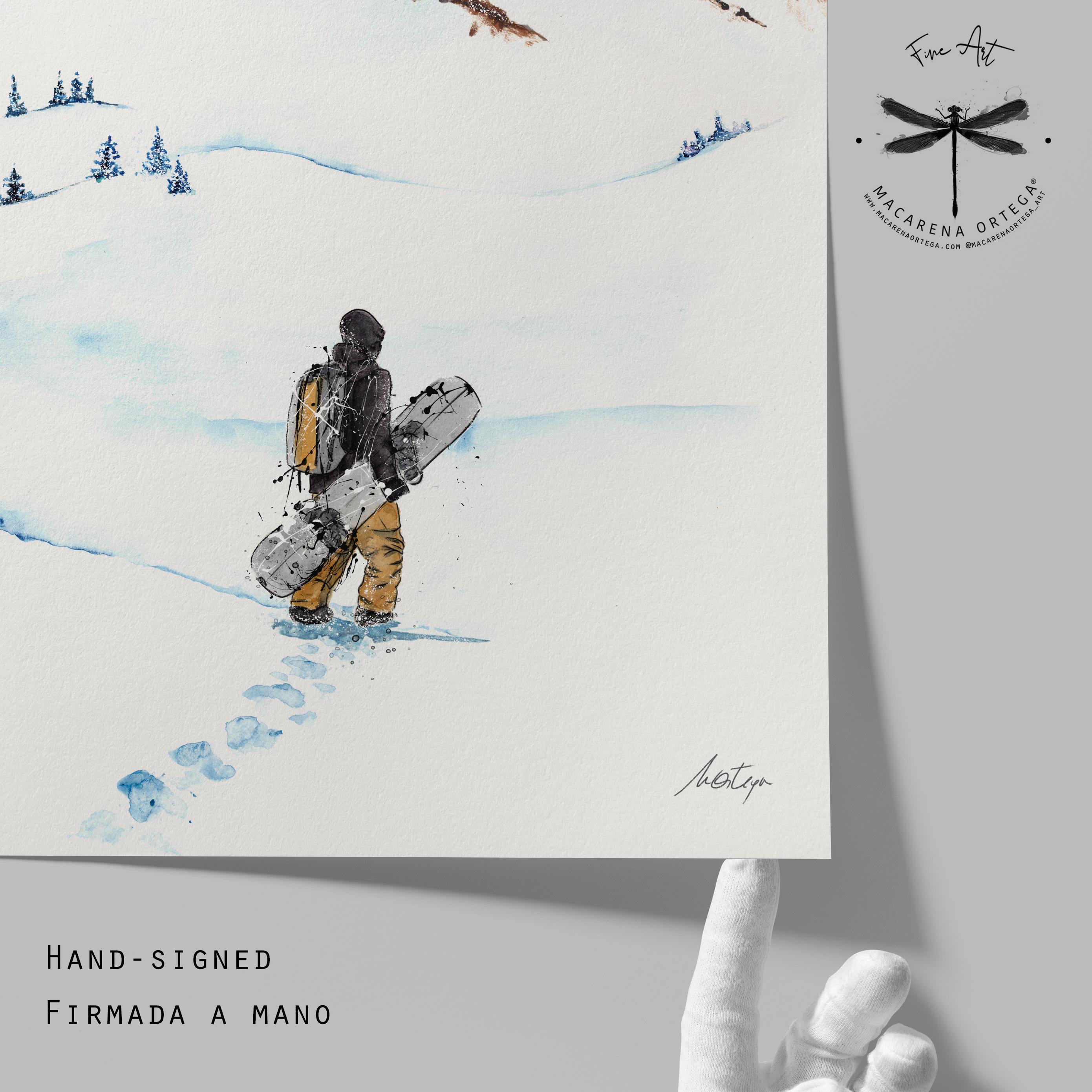 This watercolor conveys the vastness and freedom of backcountry skiing, a passion that connects us with the mountain in its purest state. With every stroke, I aim to capture not only the landscape but the intimate experience of moving in harmony with the snow and silence.
