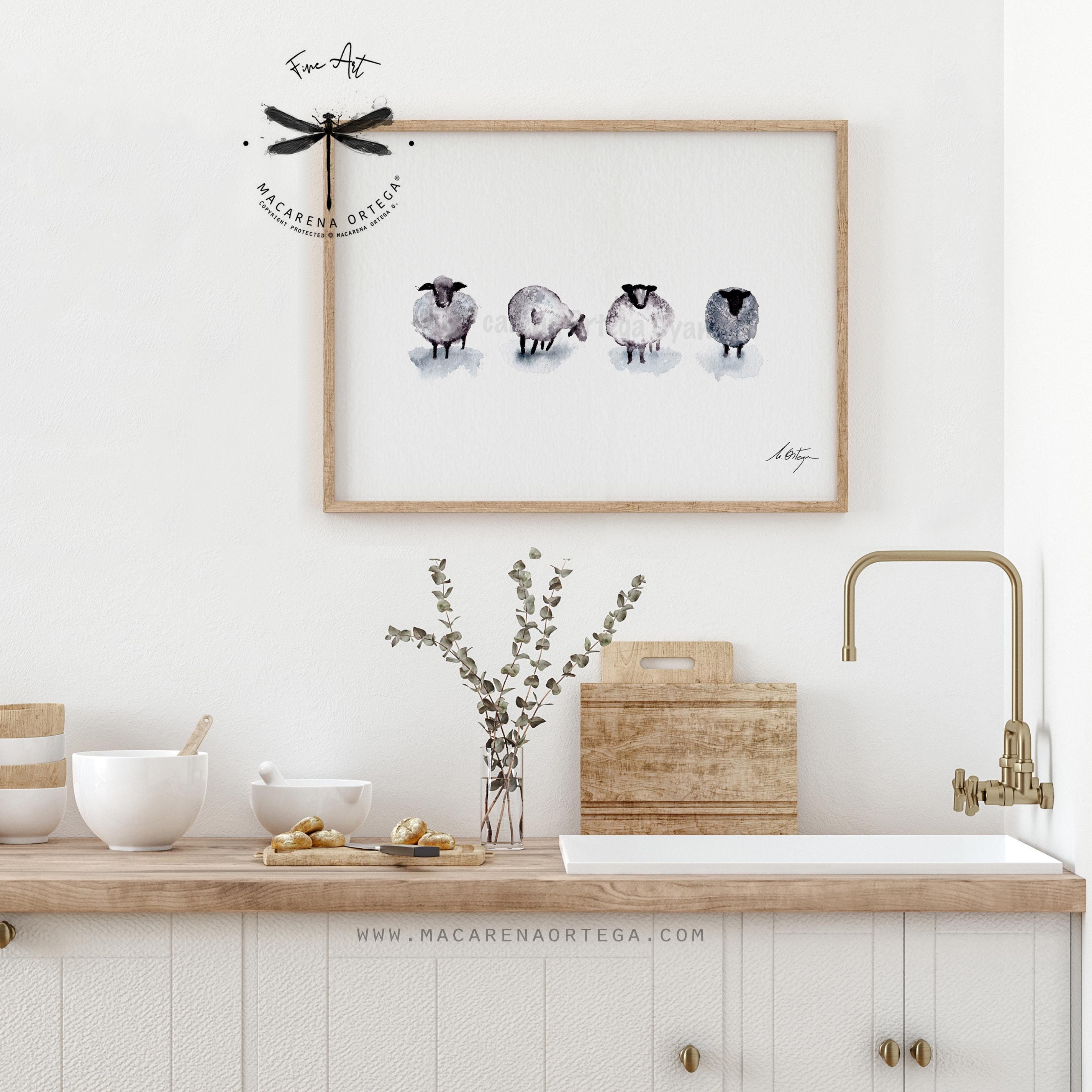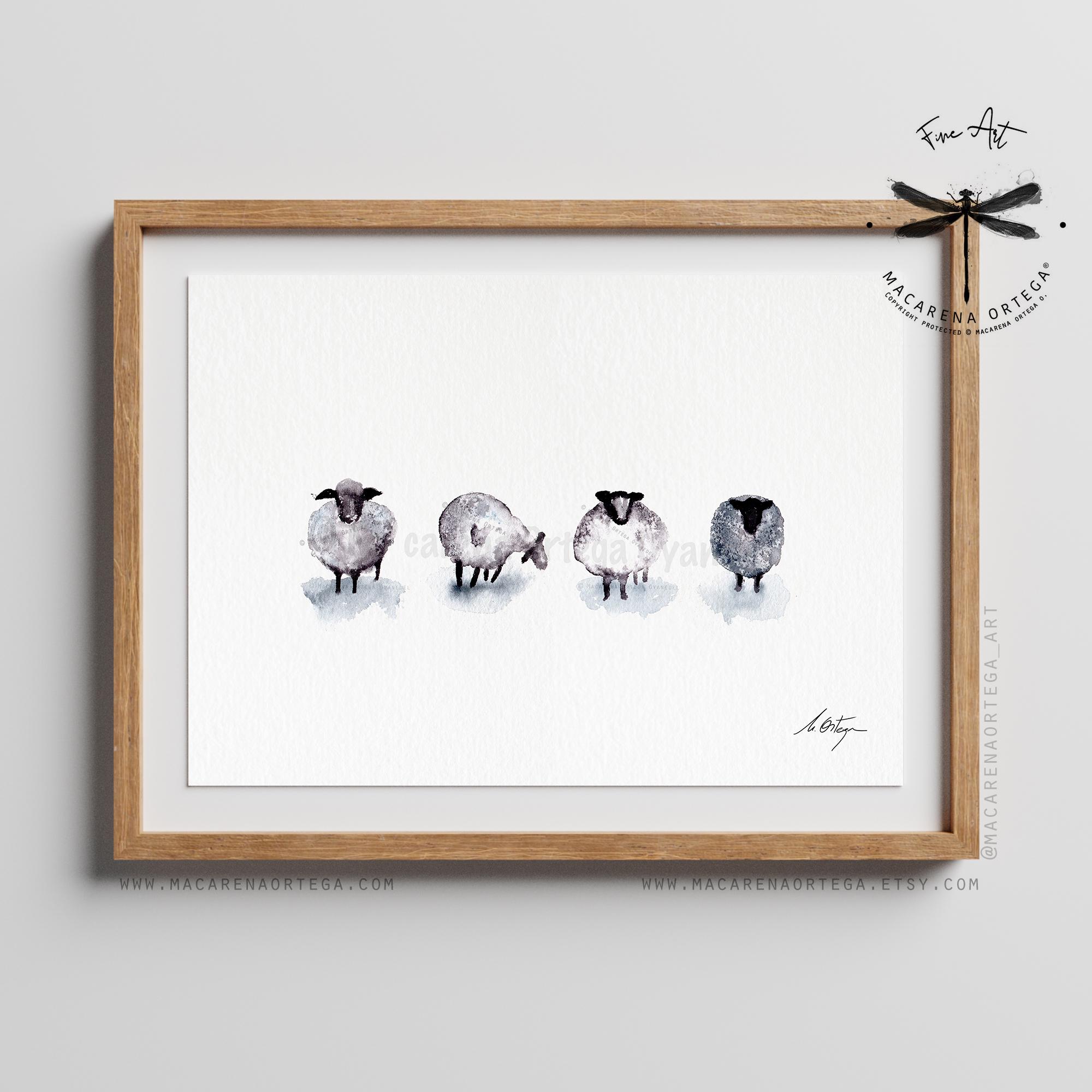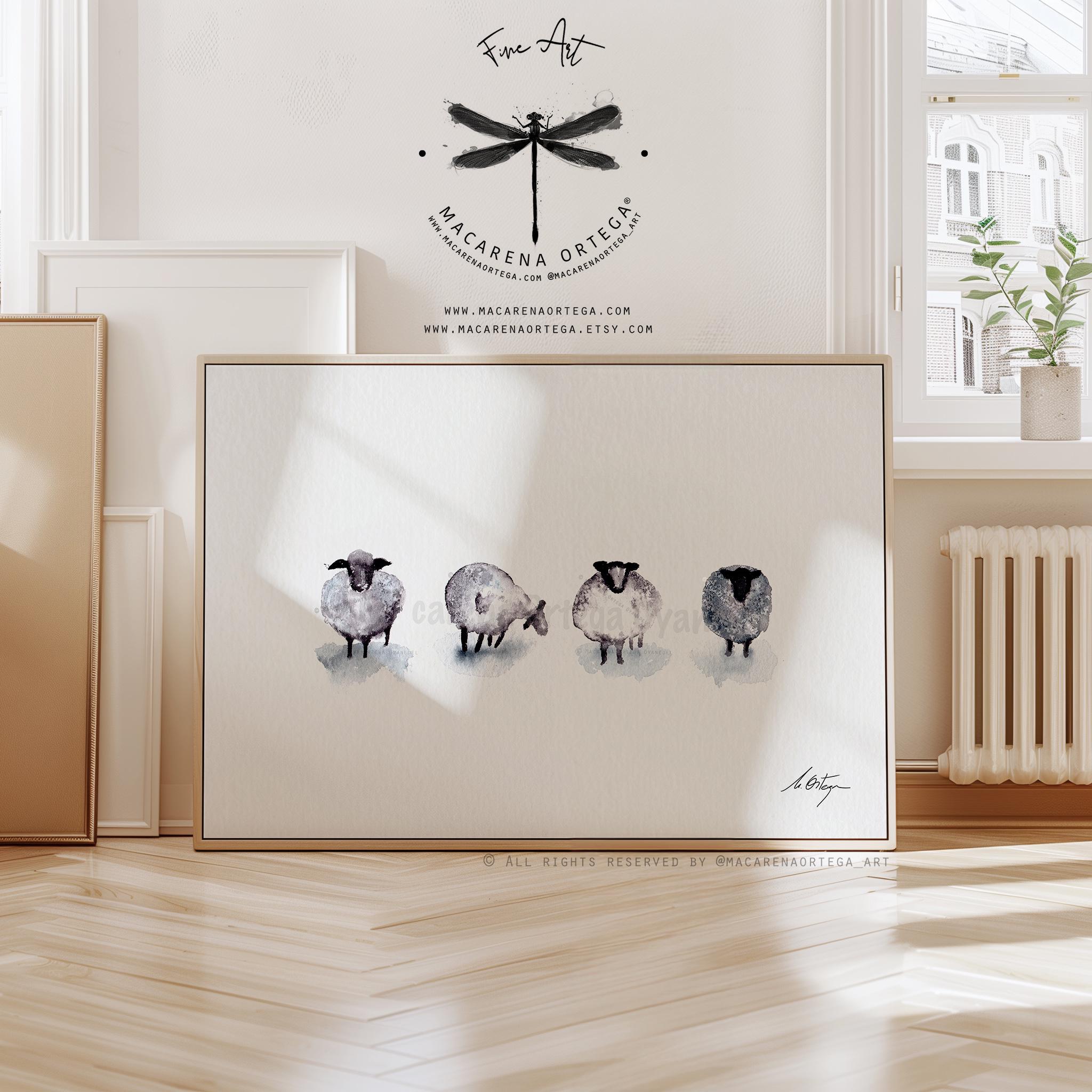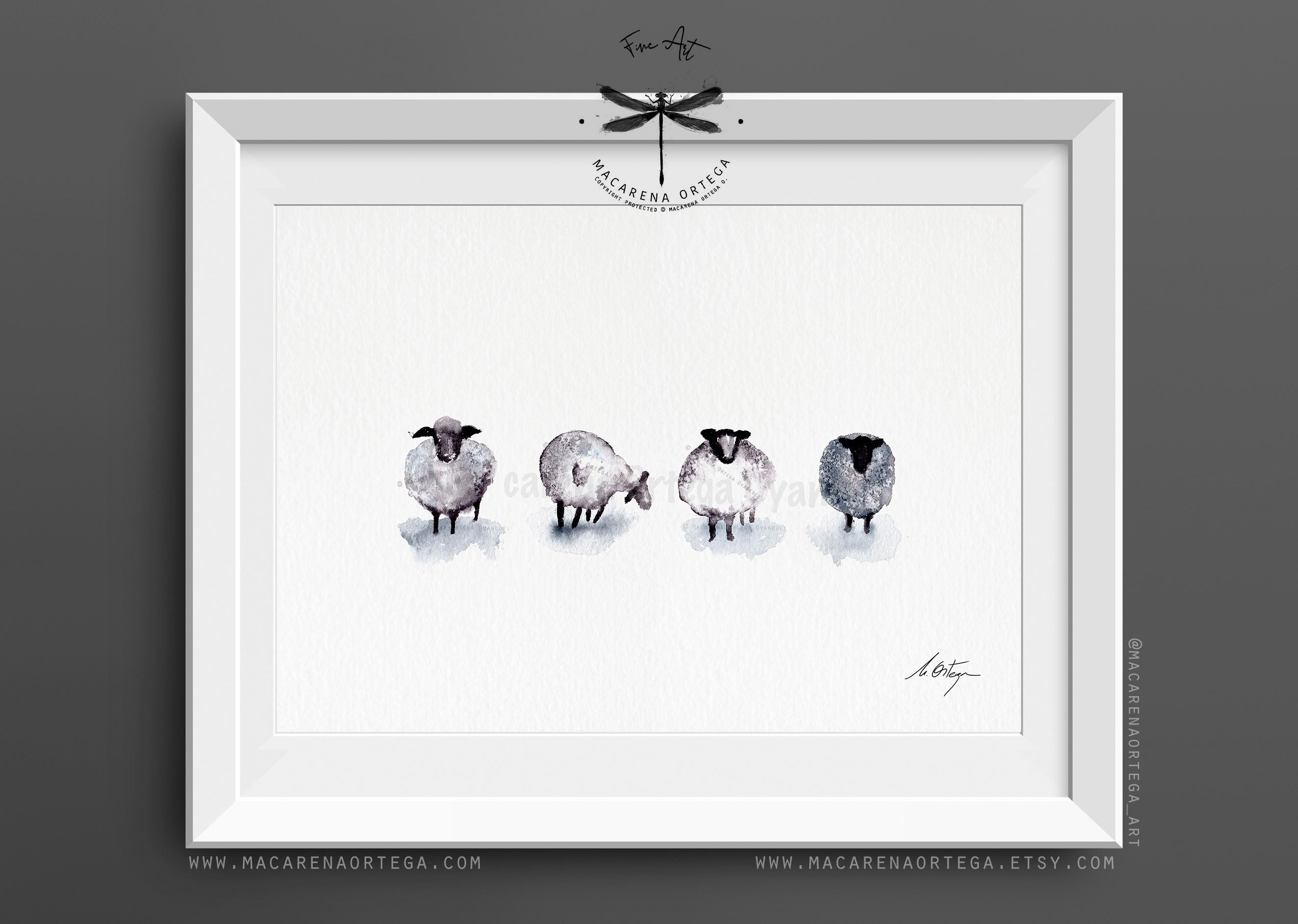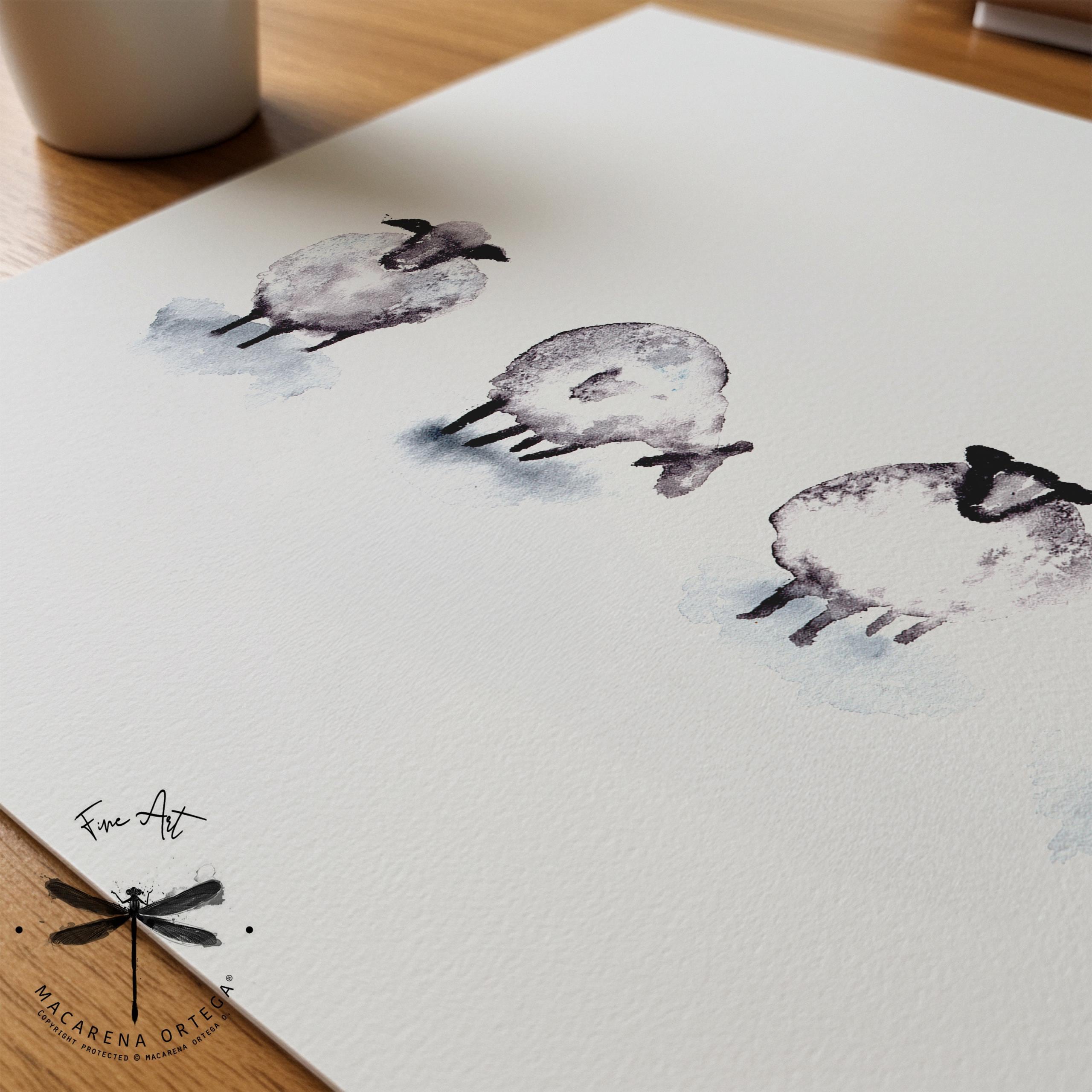 🐑 Four funny woolly friends, captured in a calm and minimalist watercolor scene — a tribute to the simple beauty of mountain life.