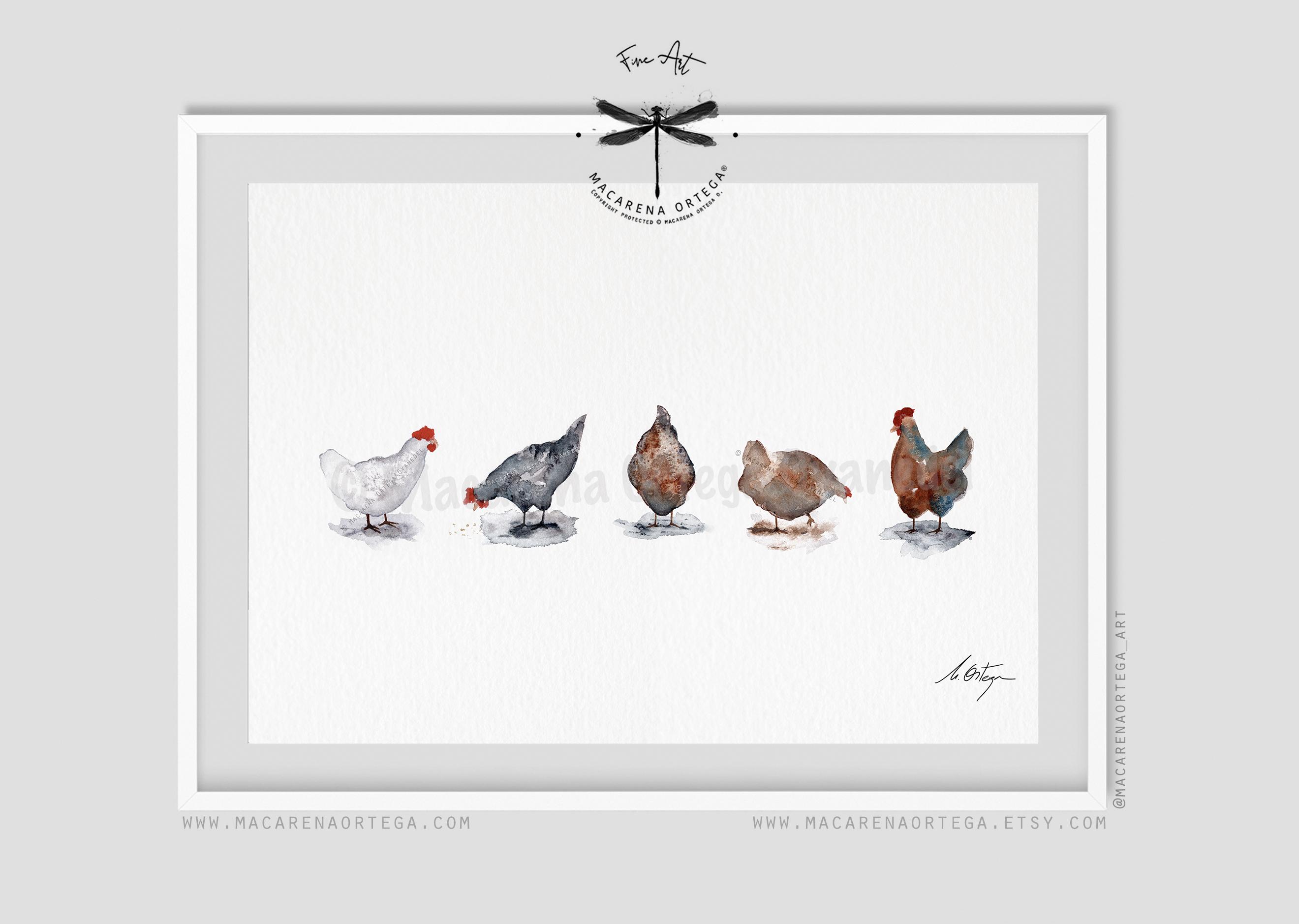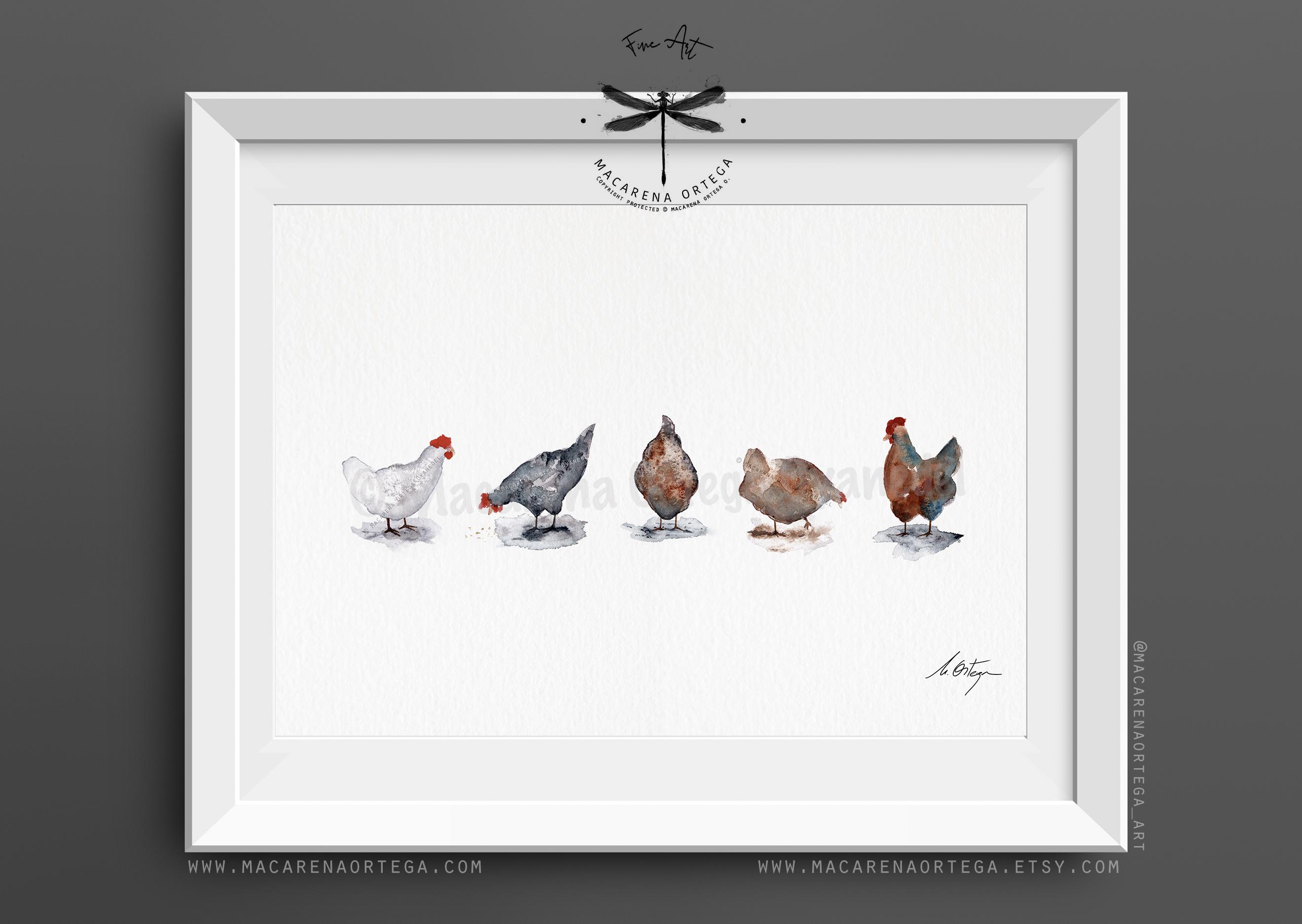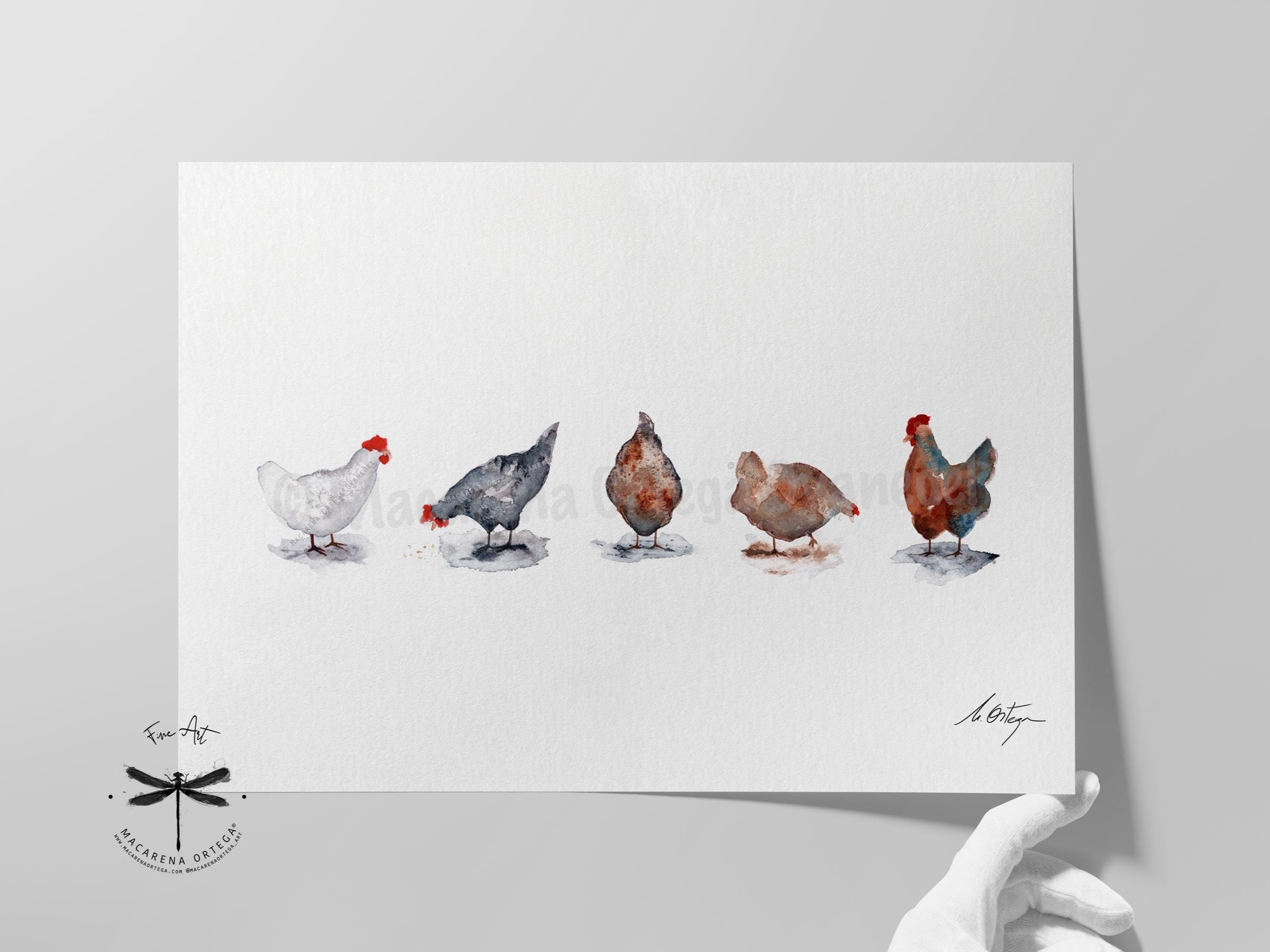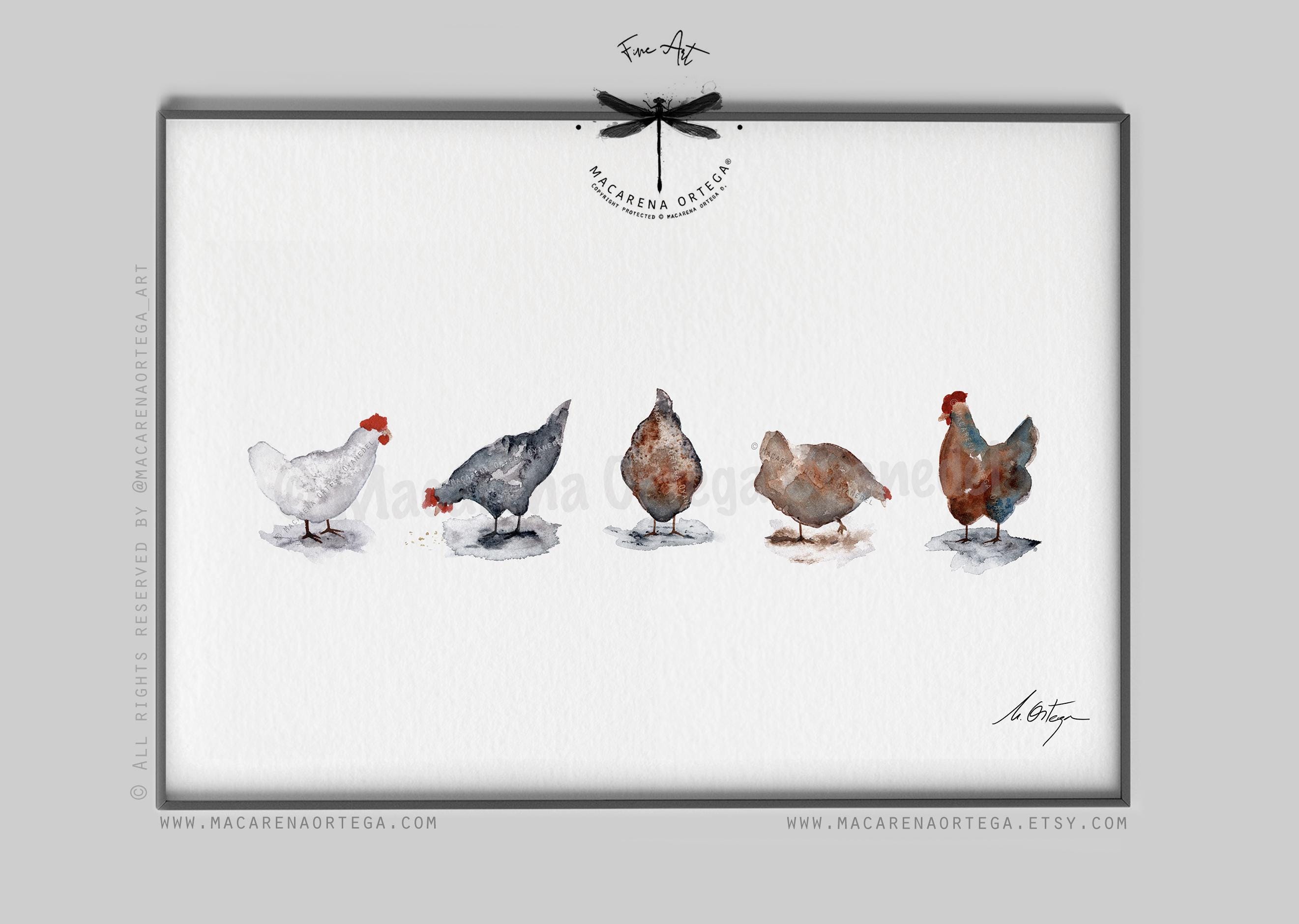 🐔Five hen friends, painted in soft watercolor, a simple and warm touch for your home.