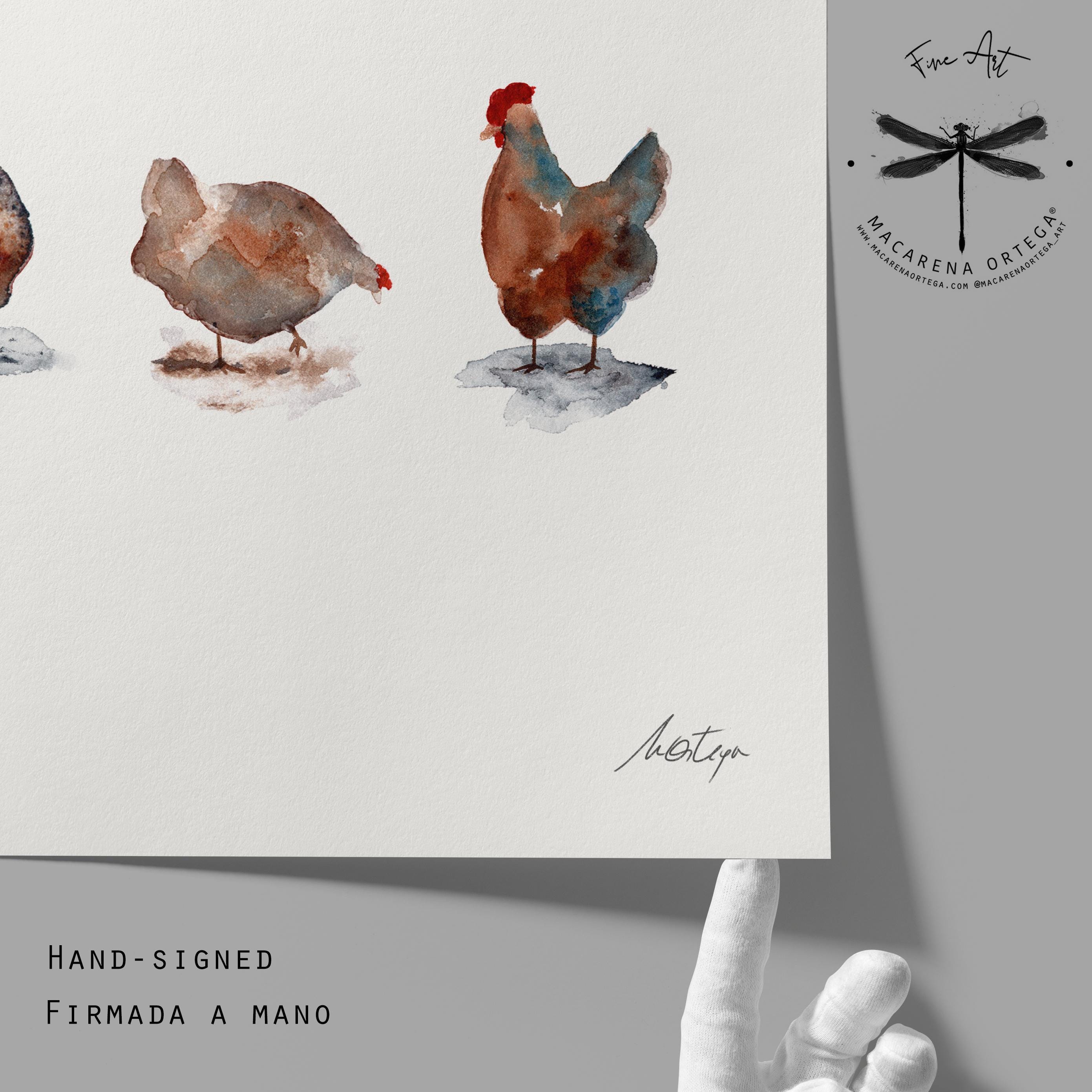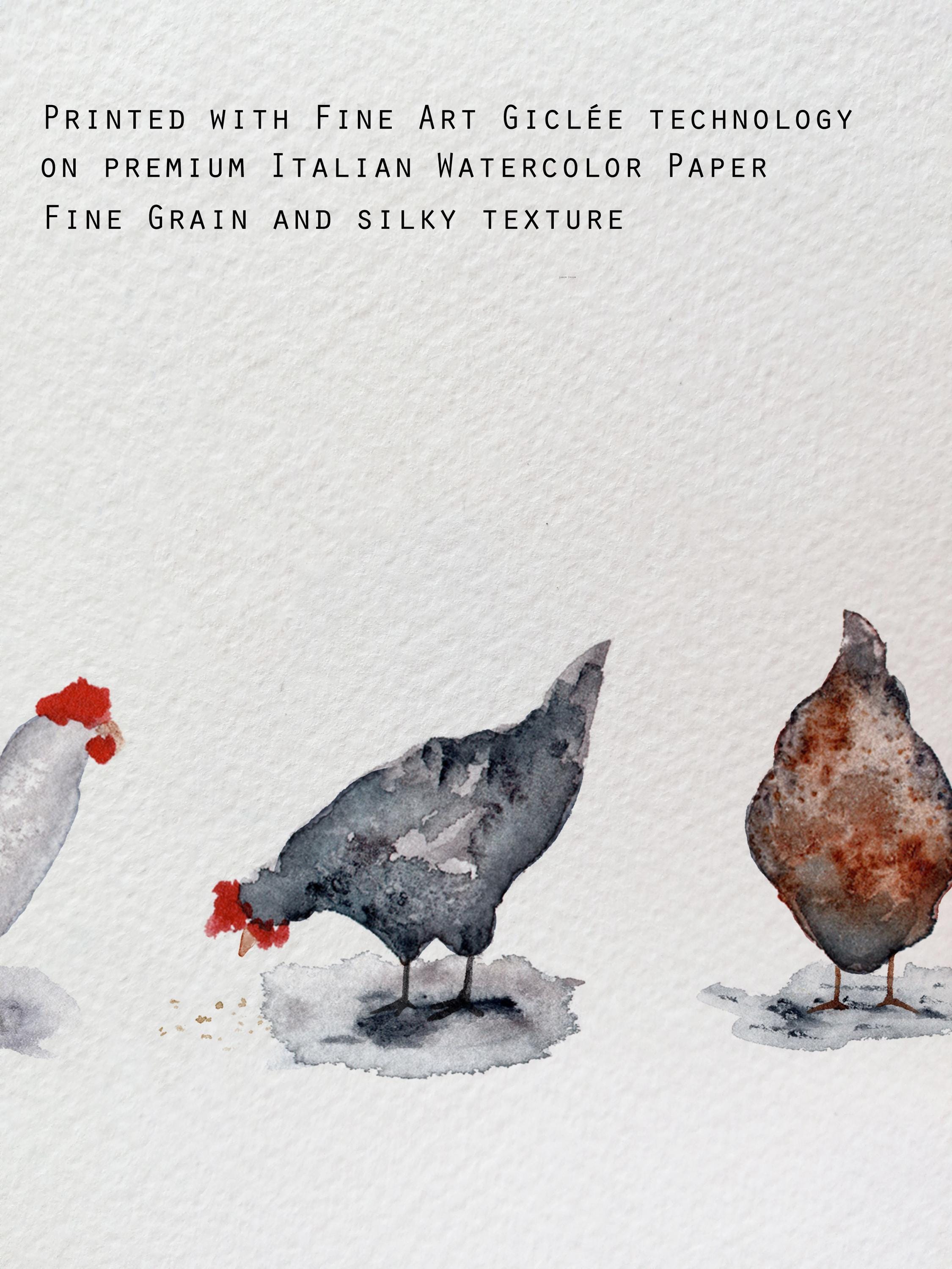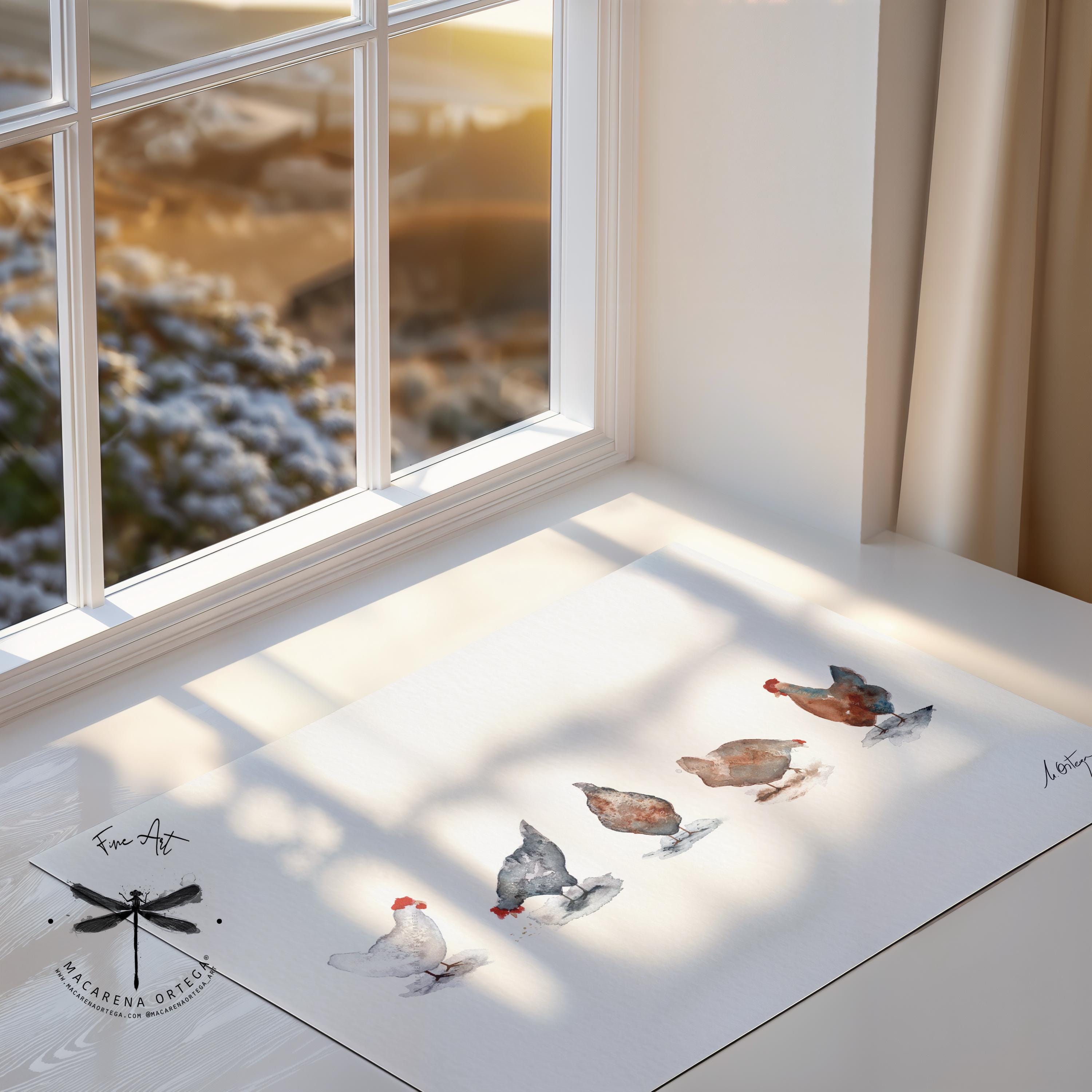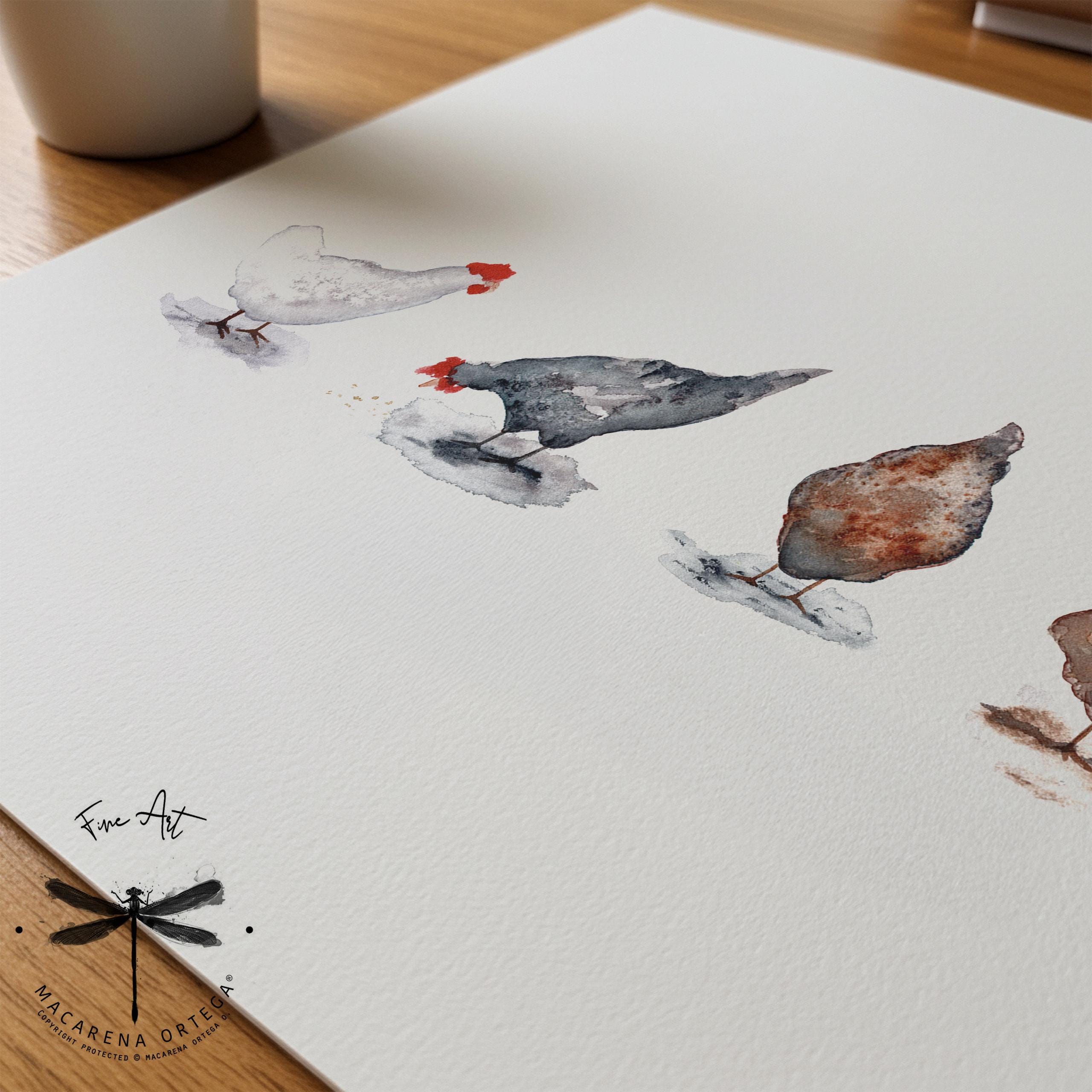 🐔Five hen friends, painted in soft watercolor, a simple and warm touch for your home.