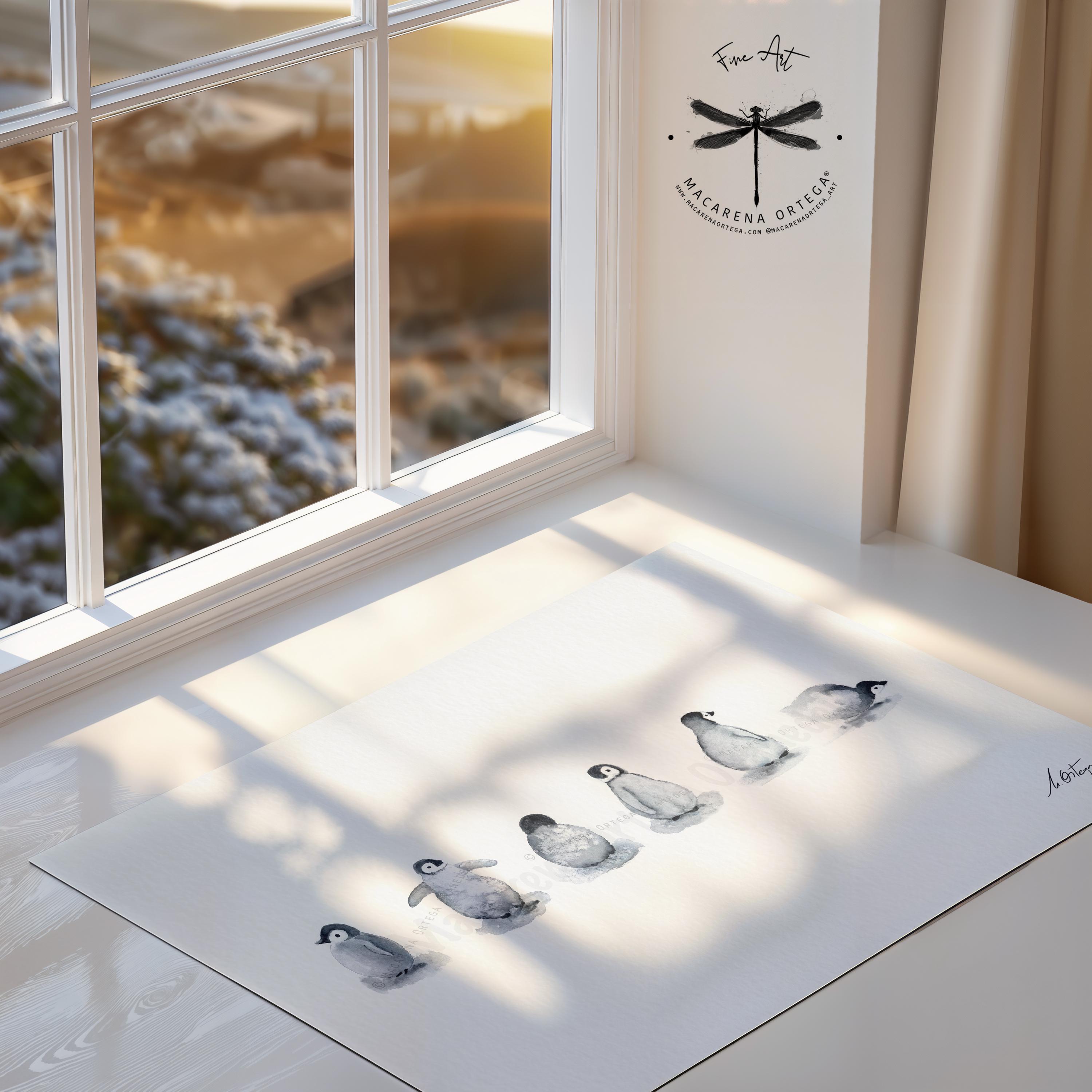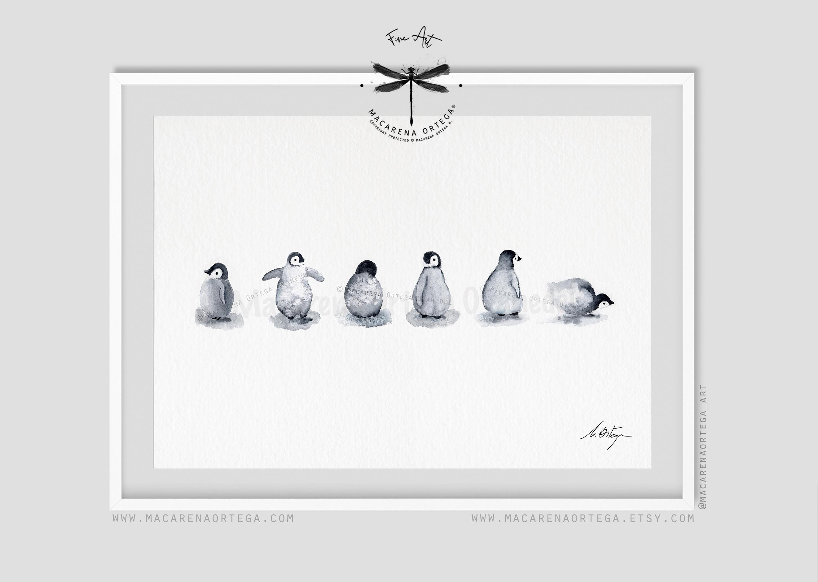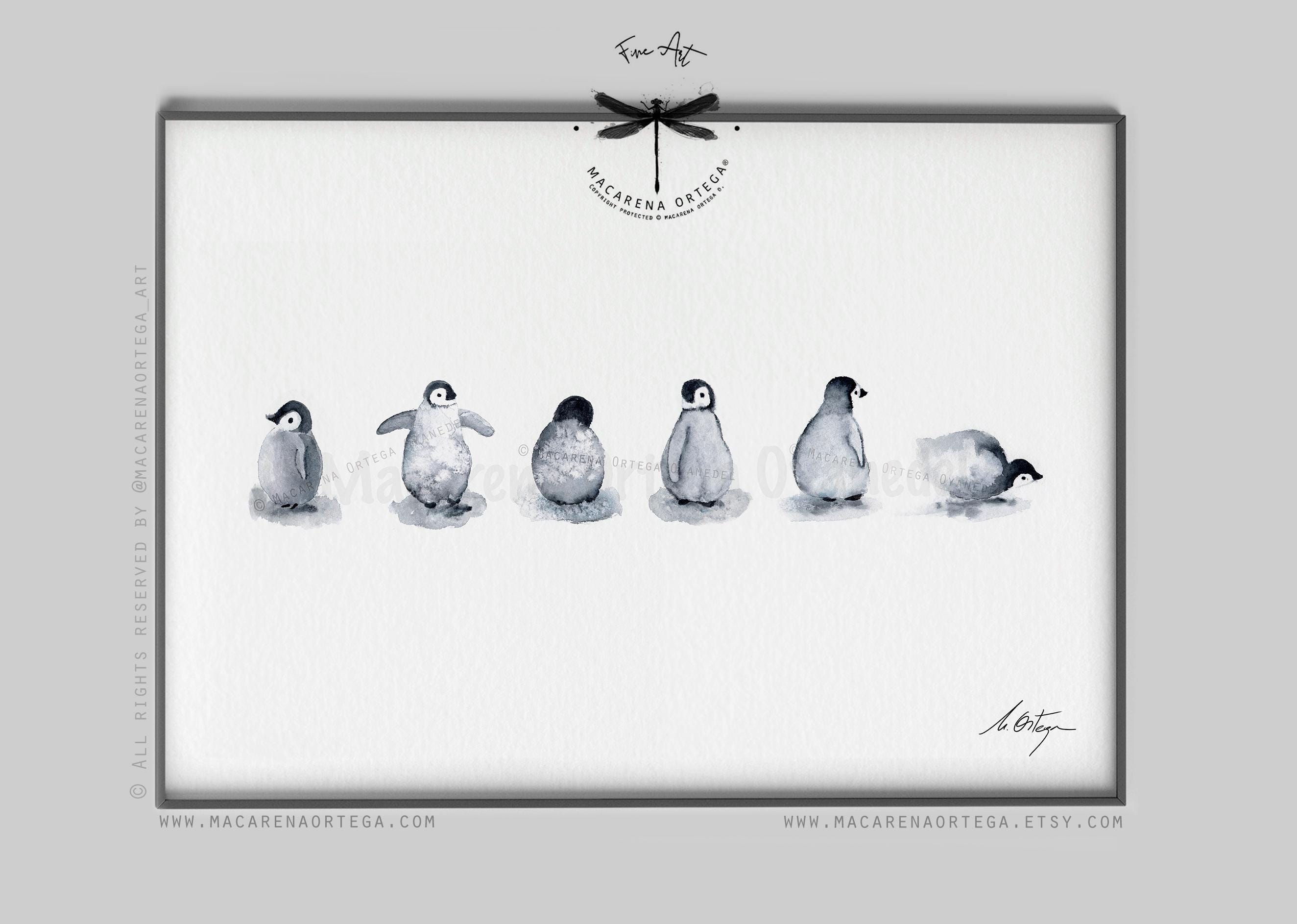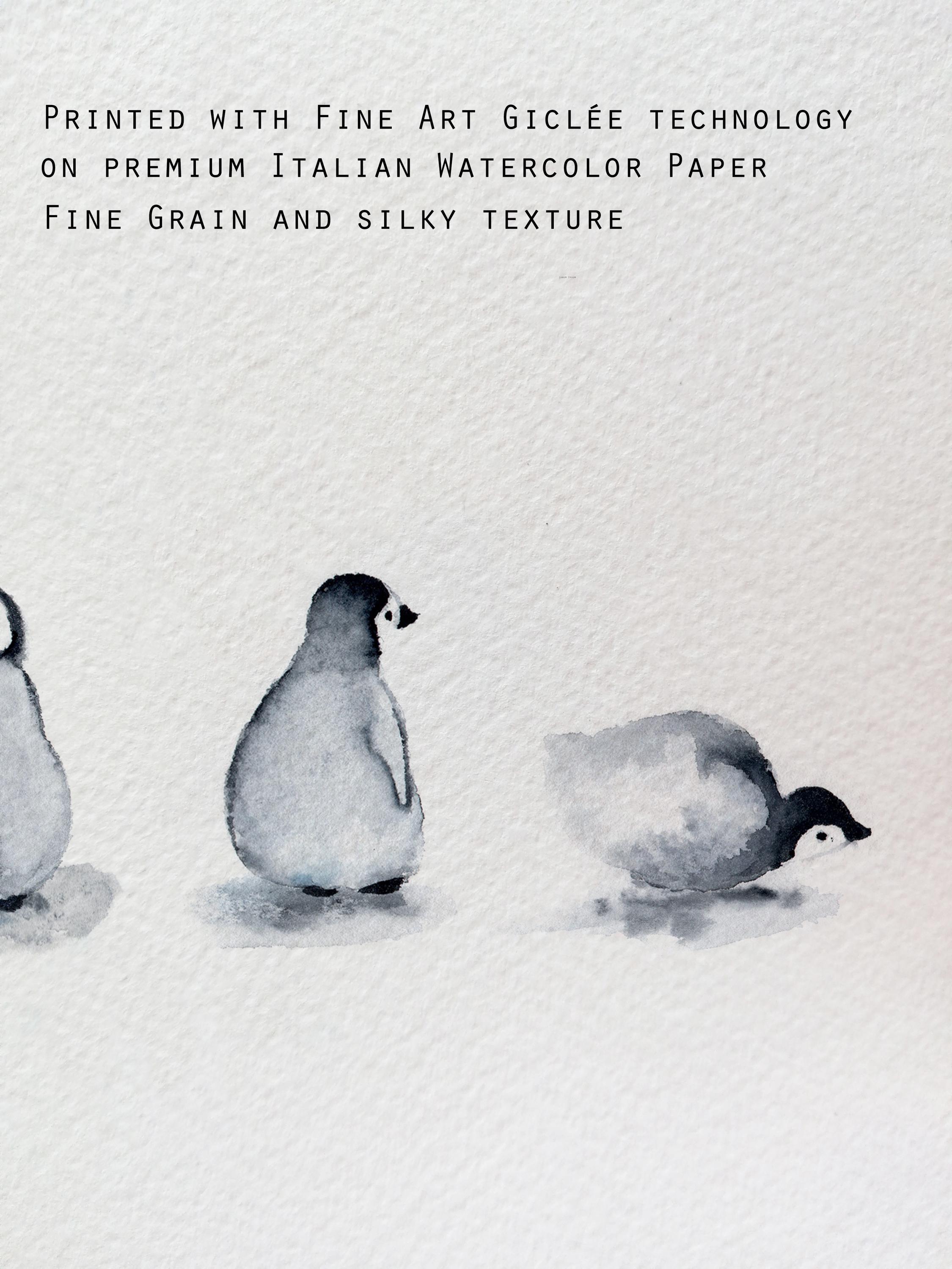 🐧 Six little penguin friends, captured in a soft and minimalist watercolor scene — a gentle tribute to the quiet beauty of Arctic life.