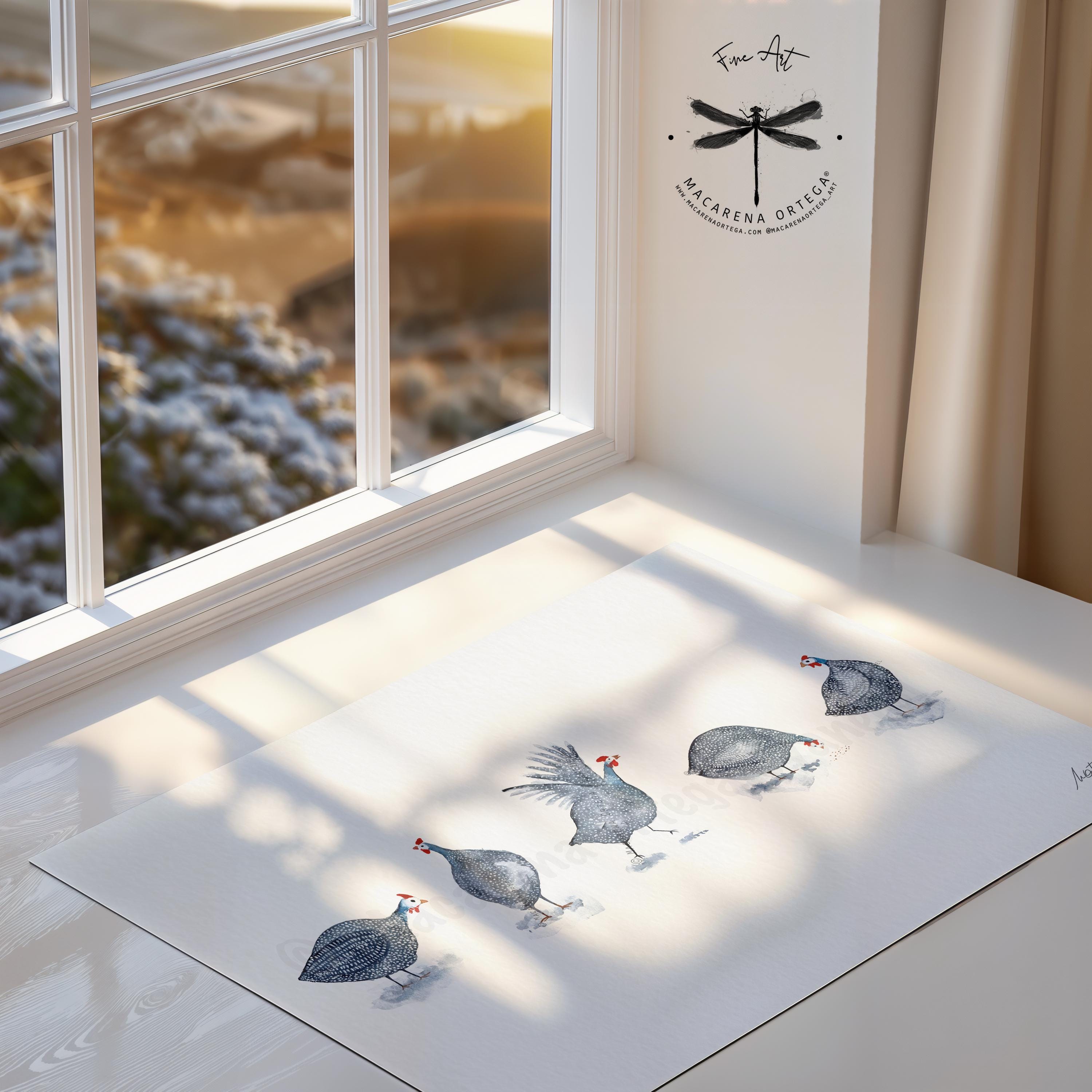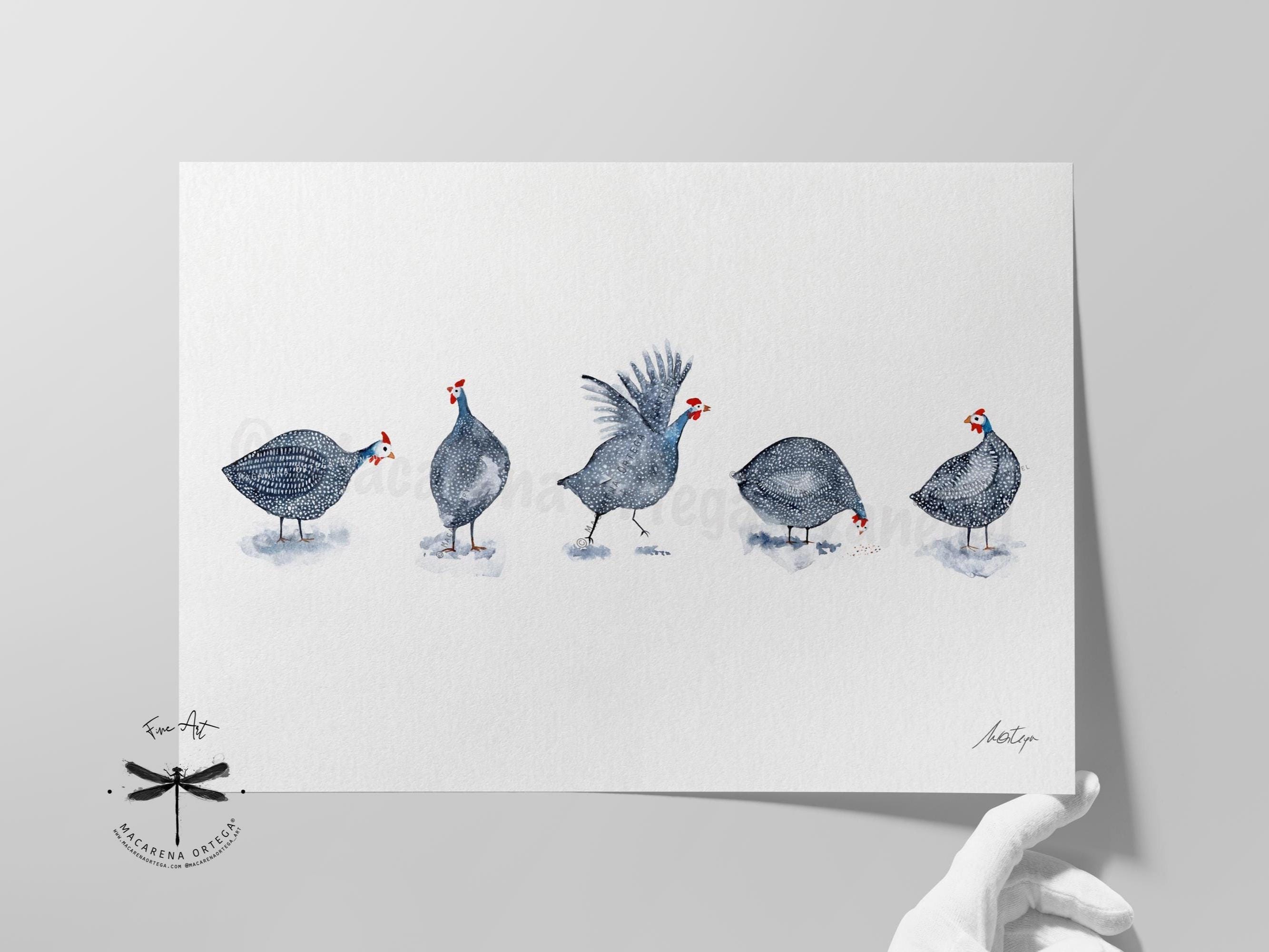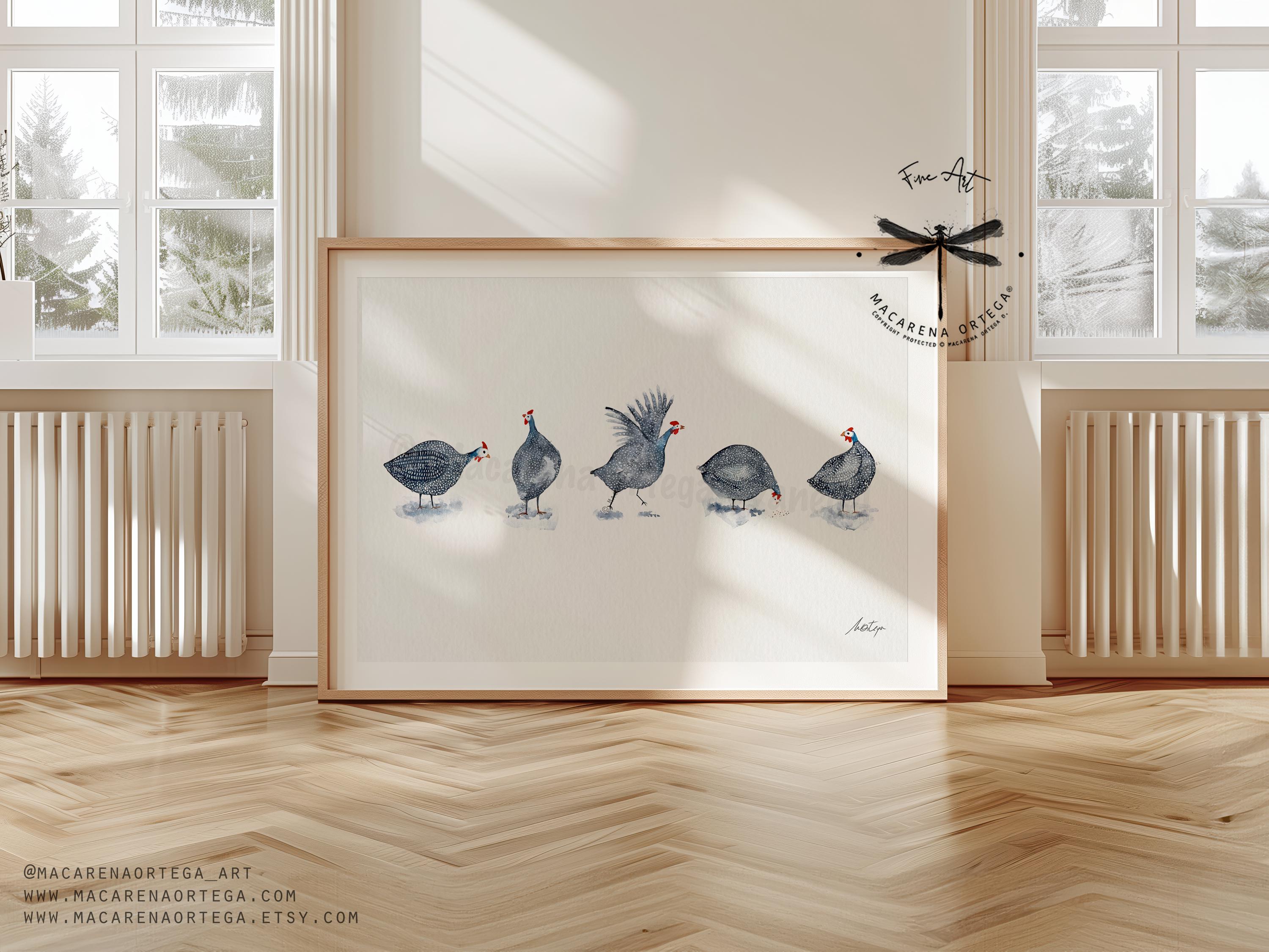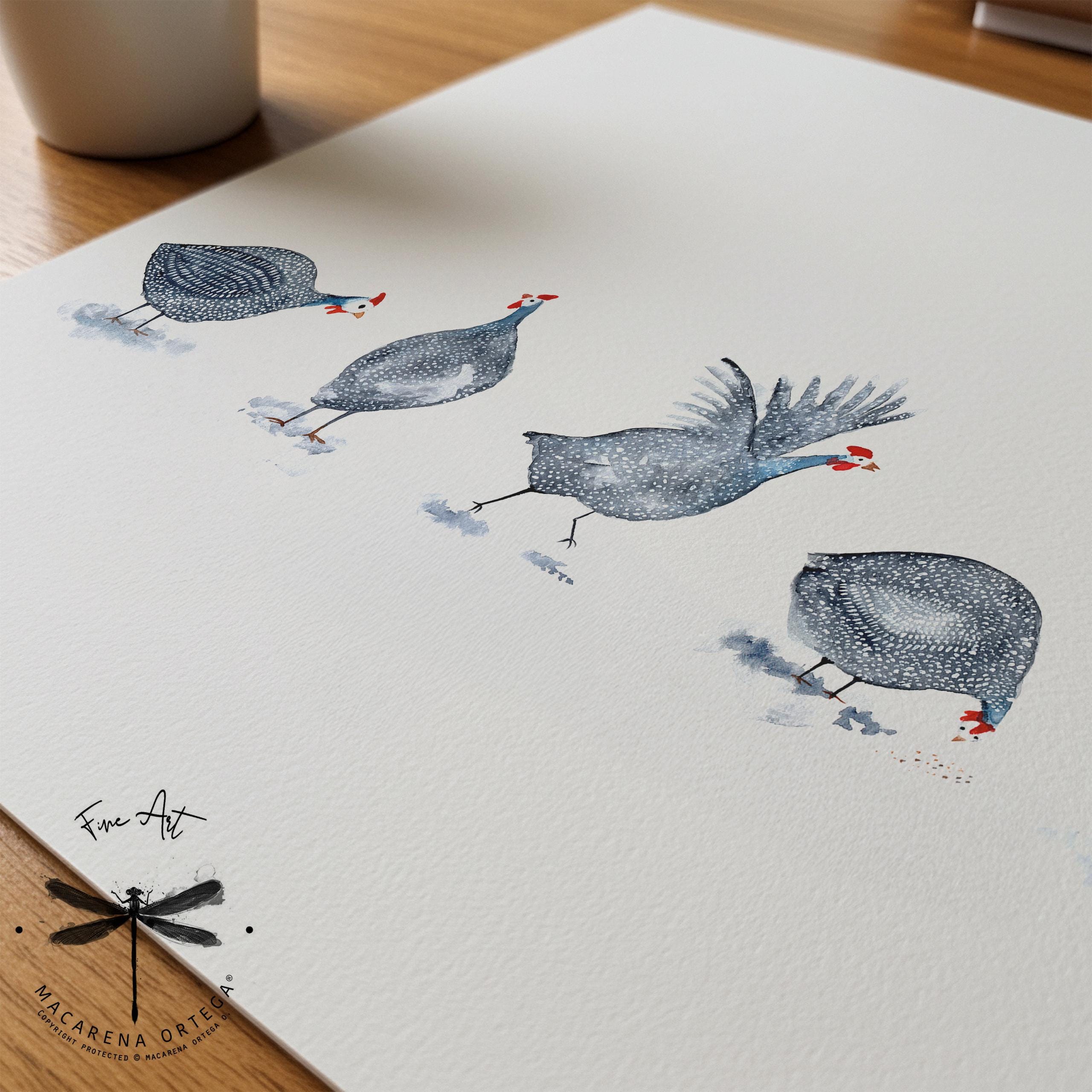 🐦 Guinea fowl with attitude, a modern watercolor blending elegance and a touch of humor in every feather.