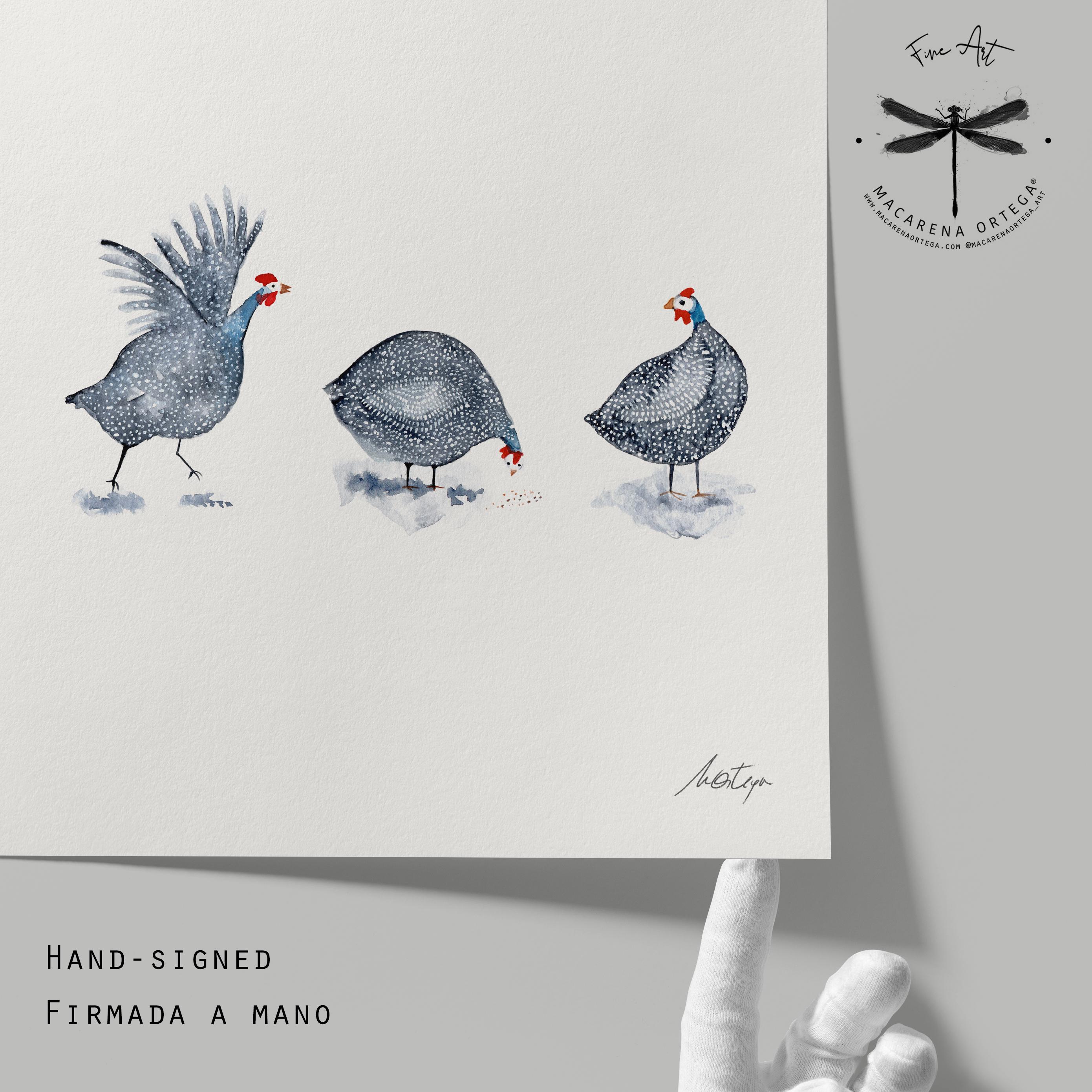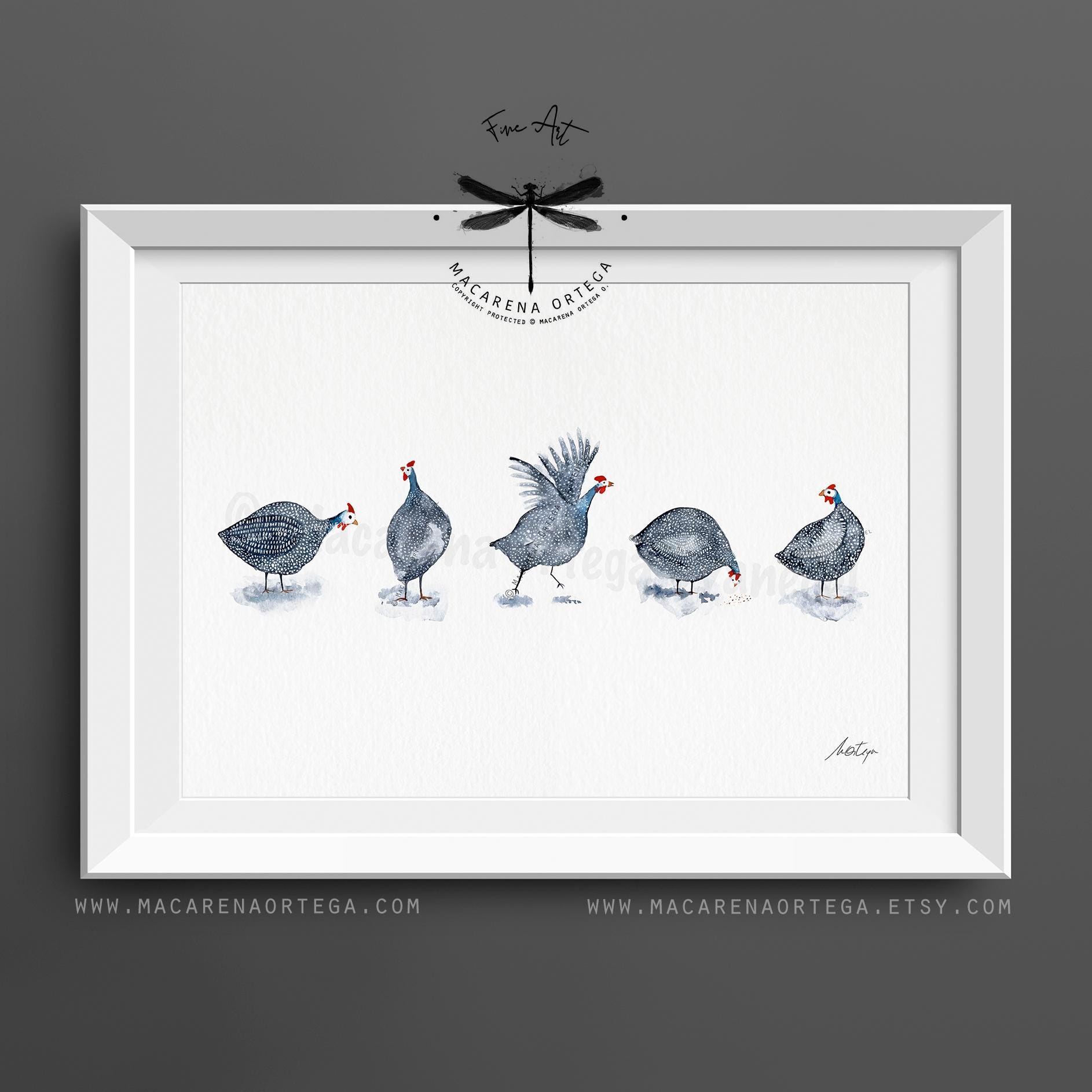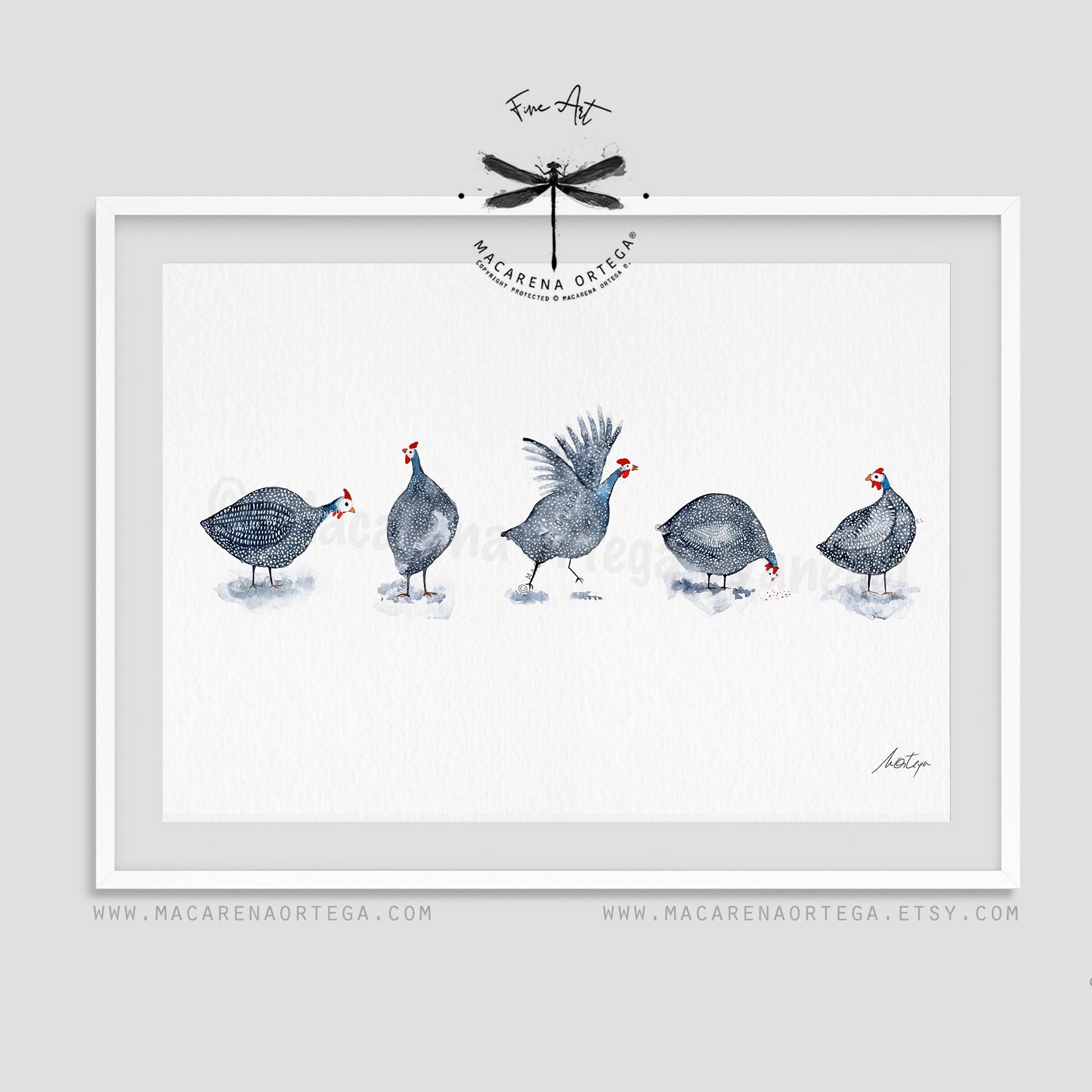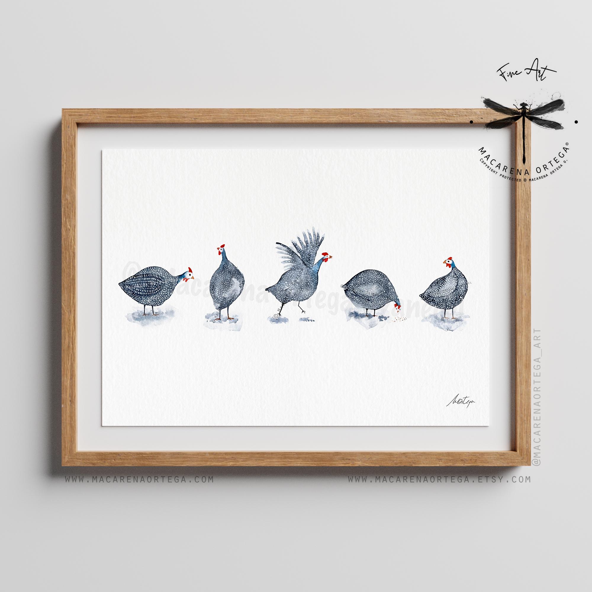 🐦 Guinea fowl with attitude, a modern watercolor blending elegance and a touch of humor in every feather.