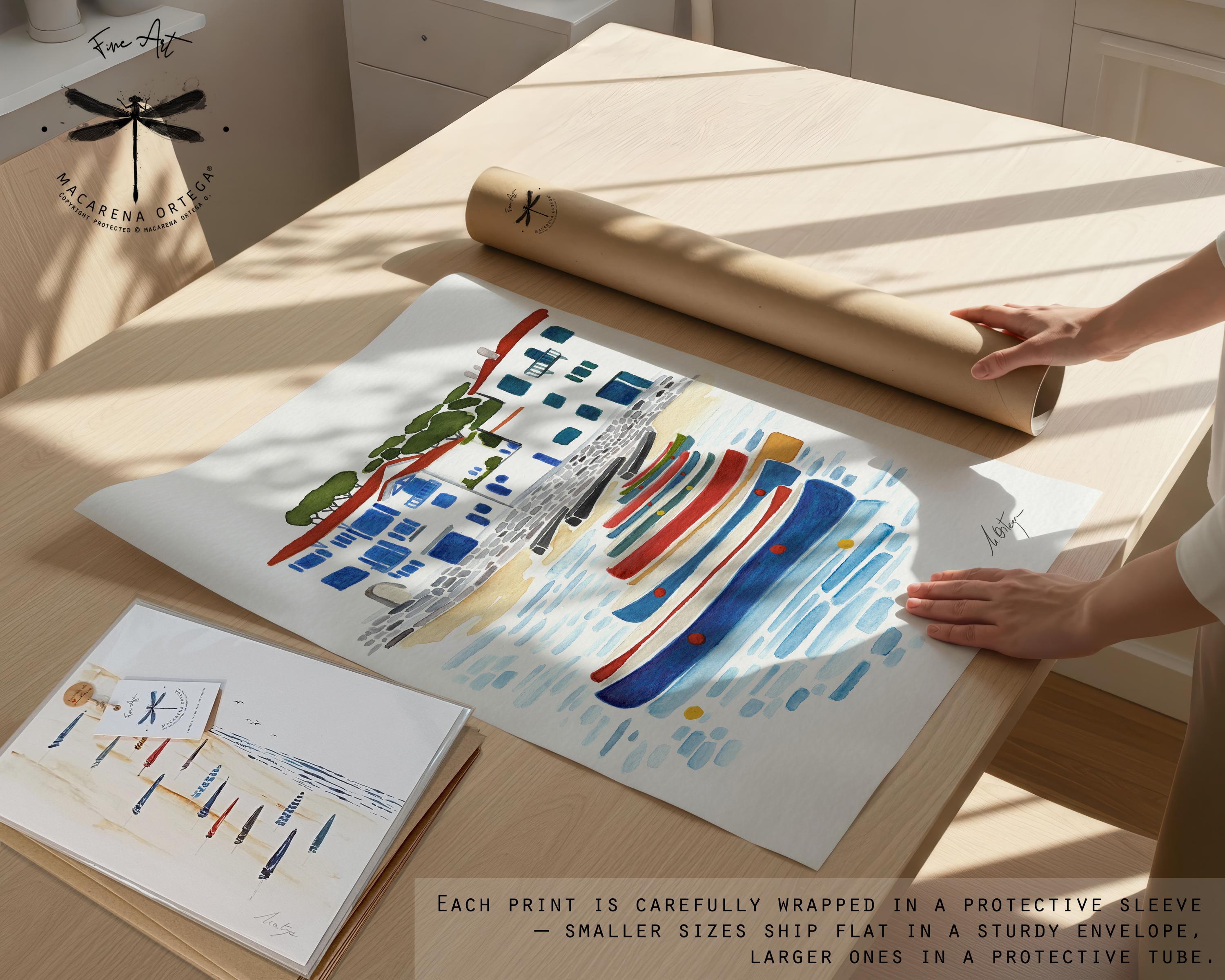 - Printed with Fine Art Giclée technology on premium Italian watercolor paper (250 gsm) known for its silky texture and exceptional color fidelity.