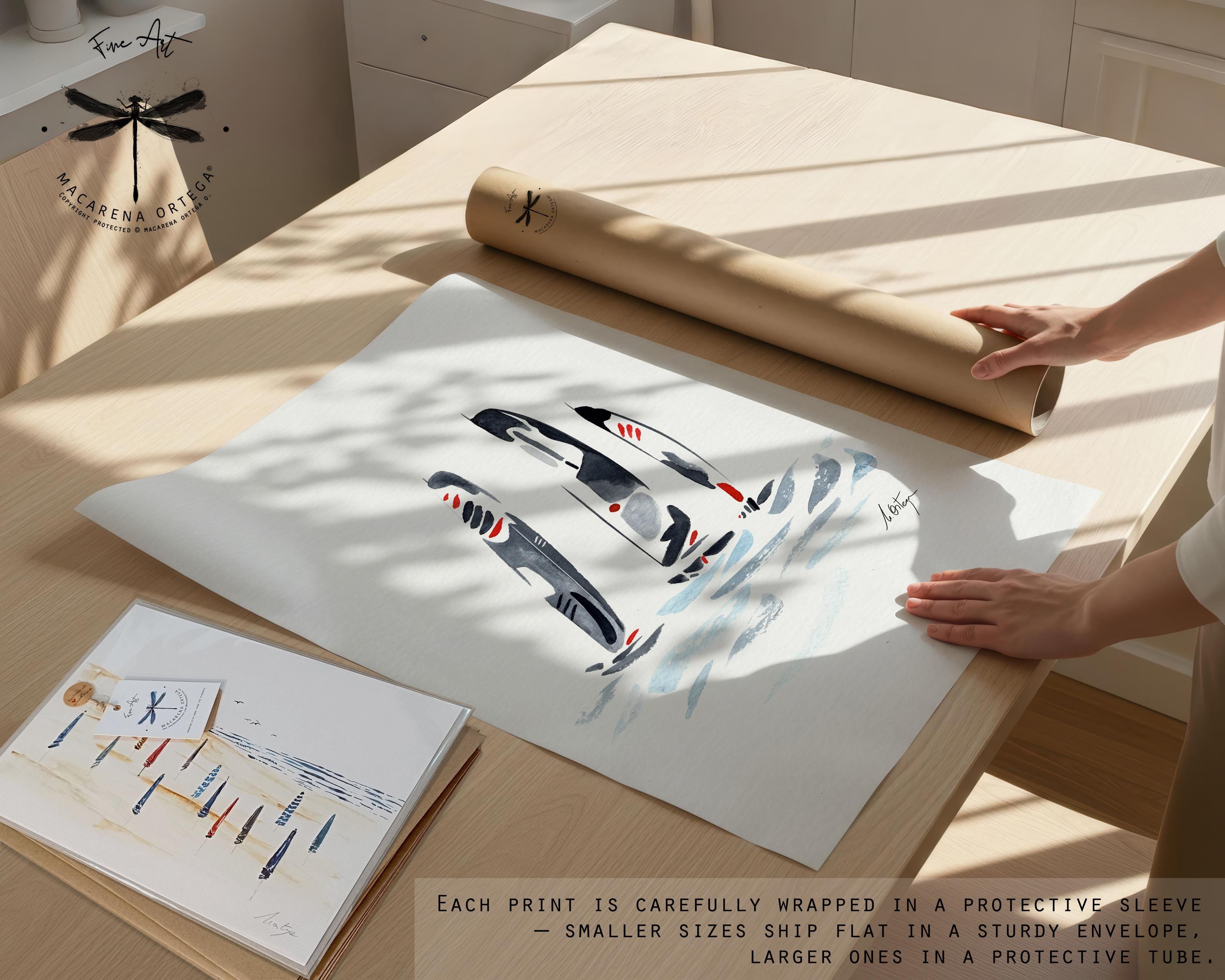 You will receive your prints packaged in an acid-free waterproof sleeve inside a sturdy cardboard mailer, this way we assure you will get them in perfect conditions.