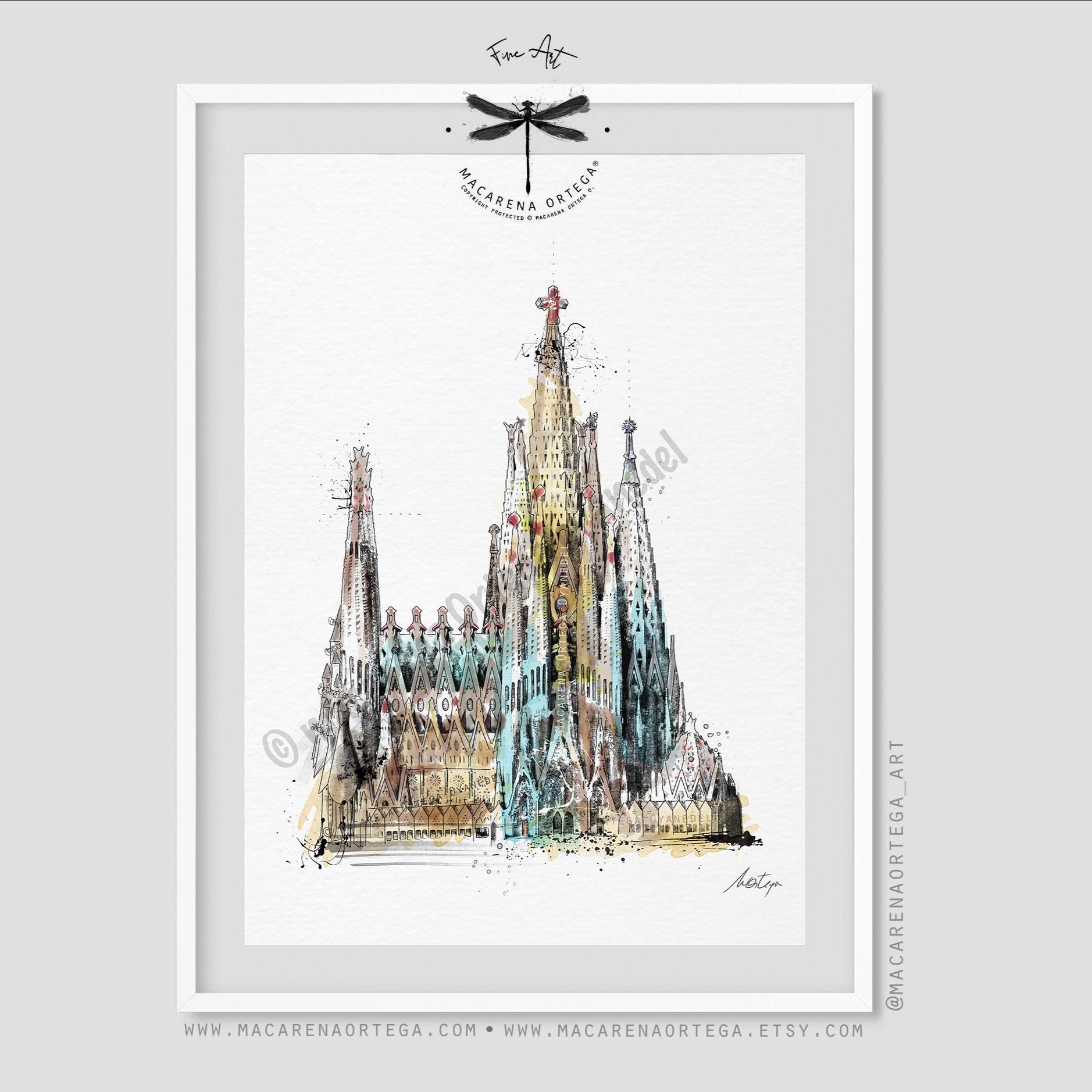 Gaudí’s Sagrada Família, an iconic view of Barcelona captured in watercolor.